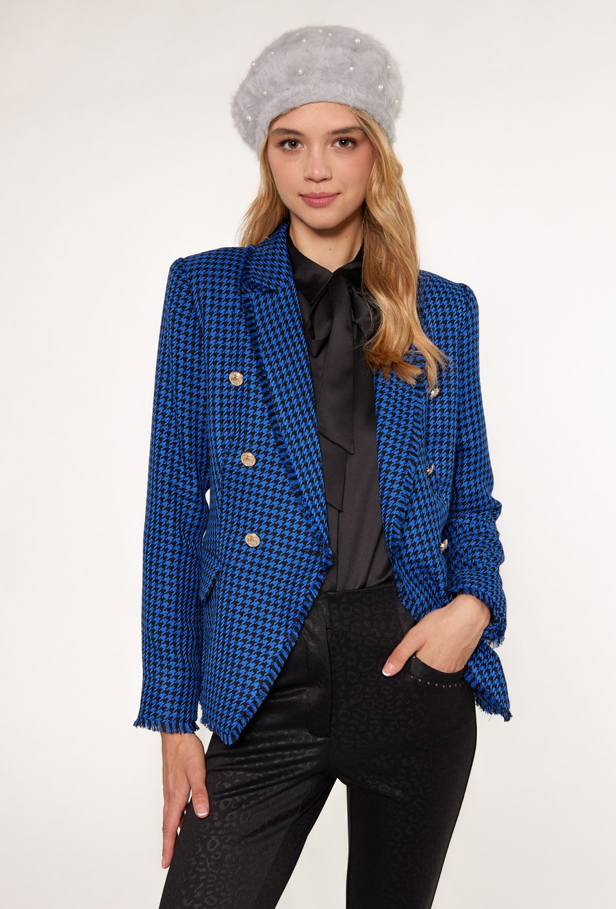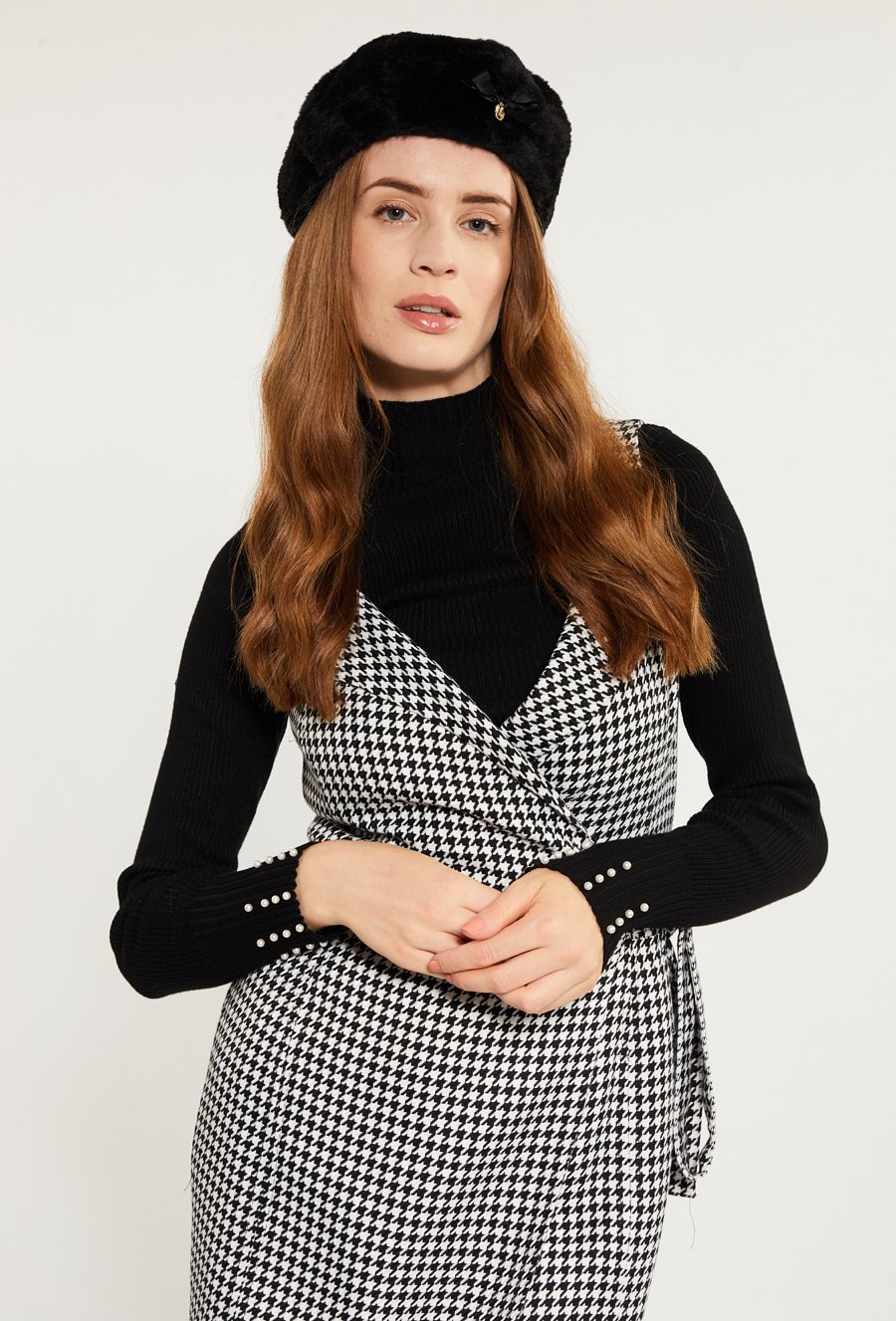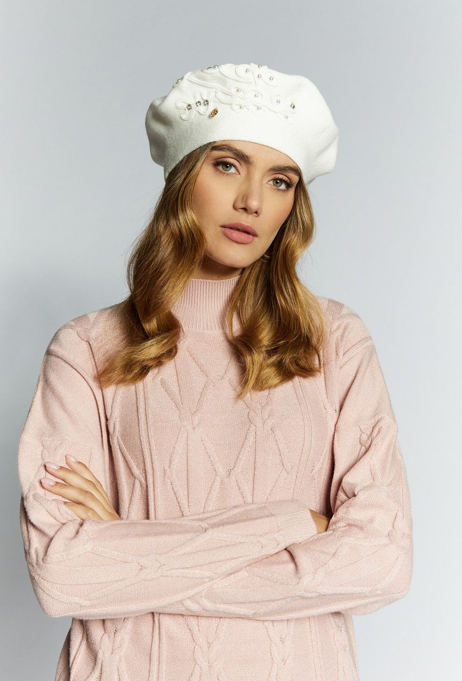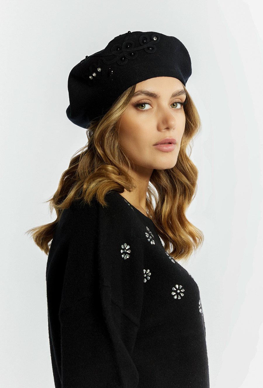 Beret zdobiony perełkami