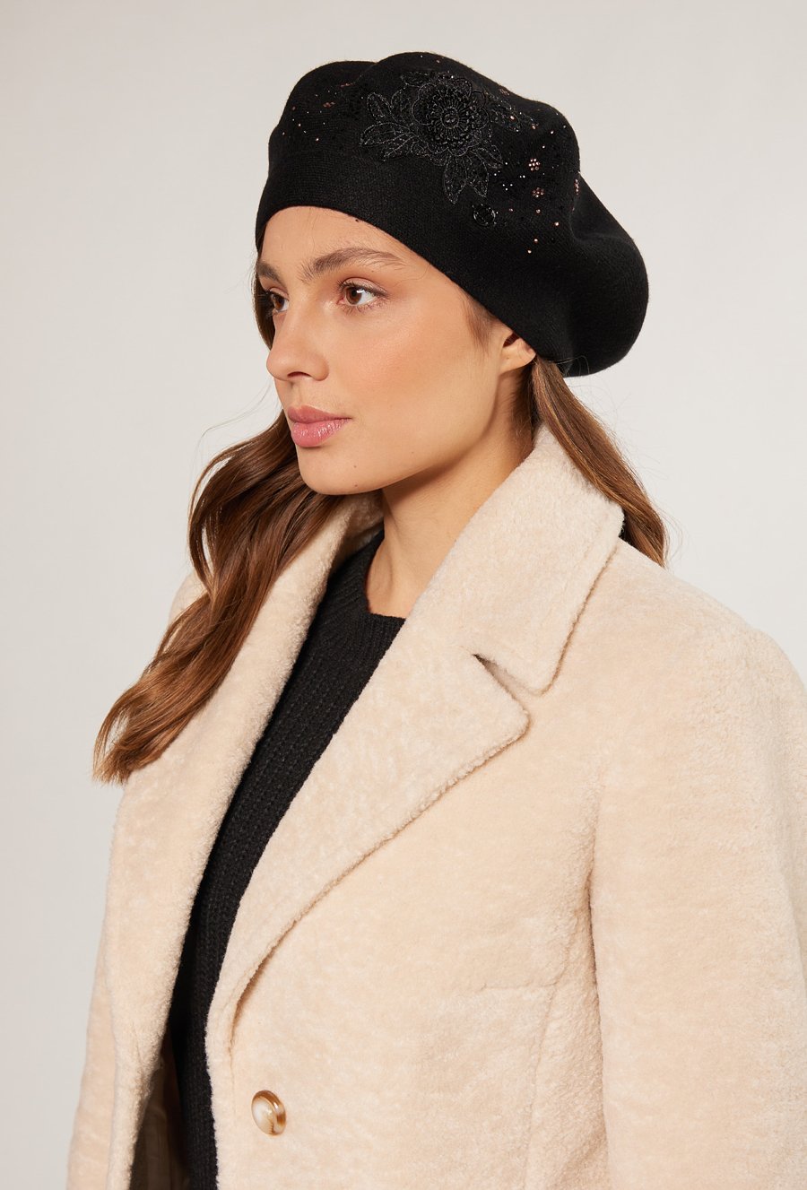 Beret z delikatną aplikacją