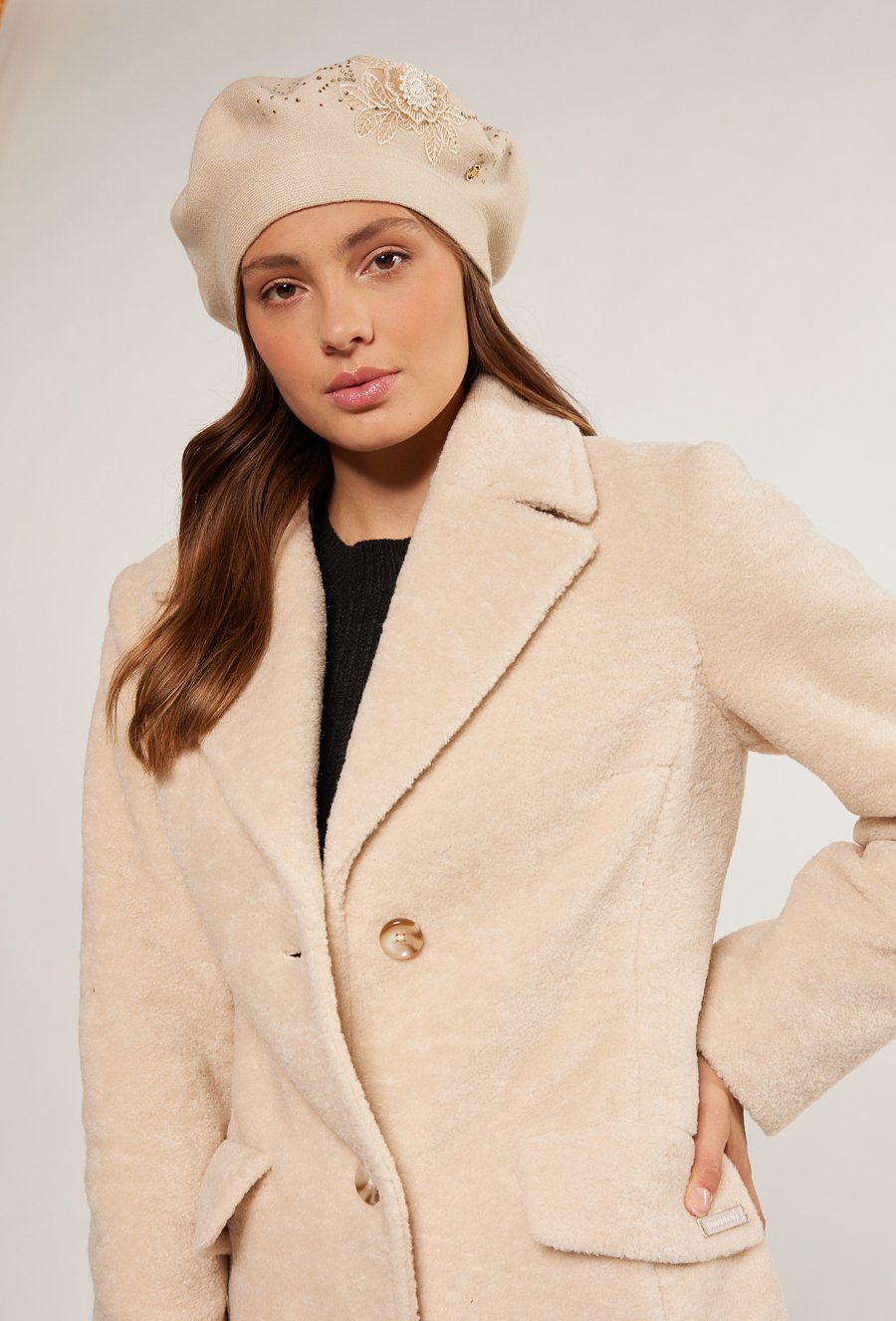Beret z ozdobną aplikacją
