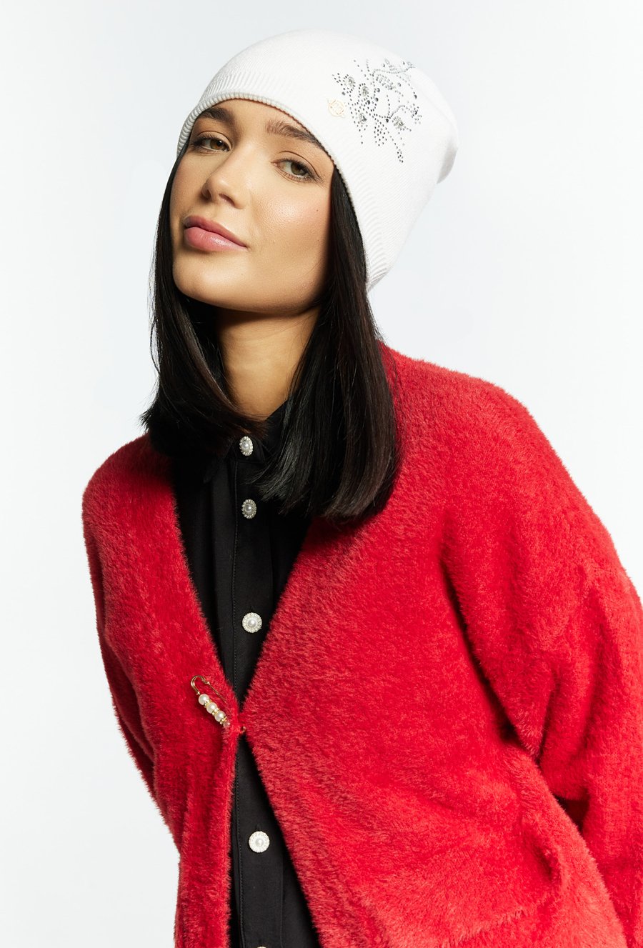 Czapka damska z kwiecistą aplikacją