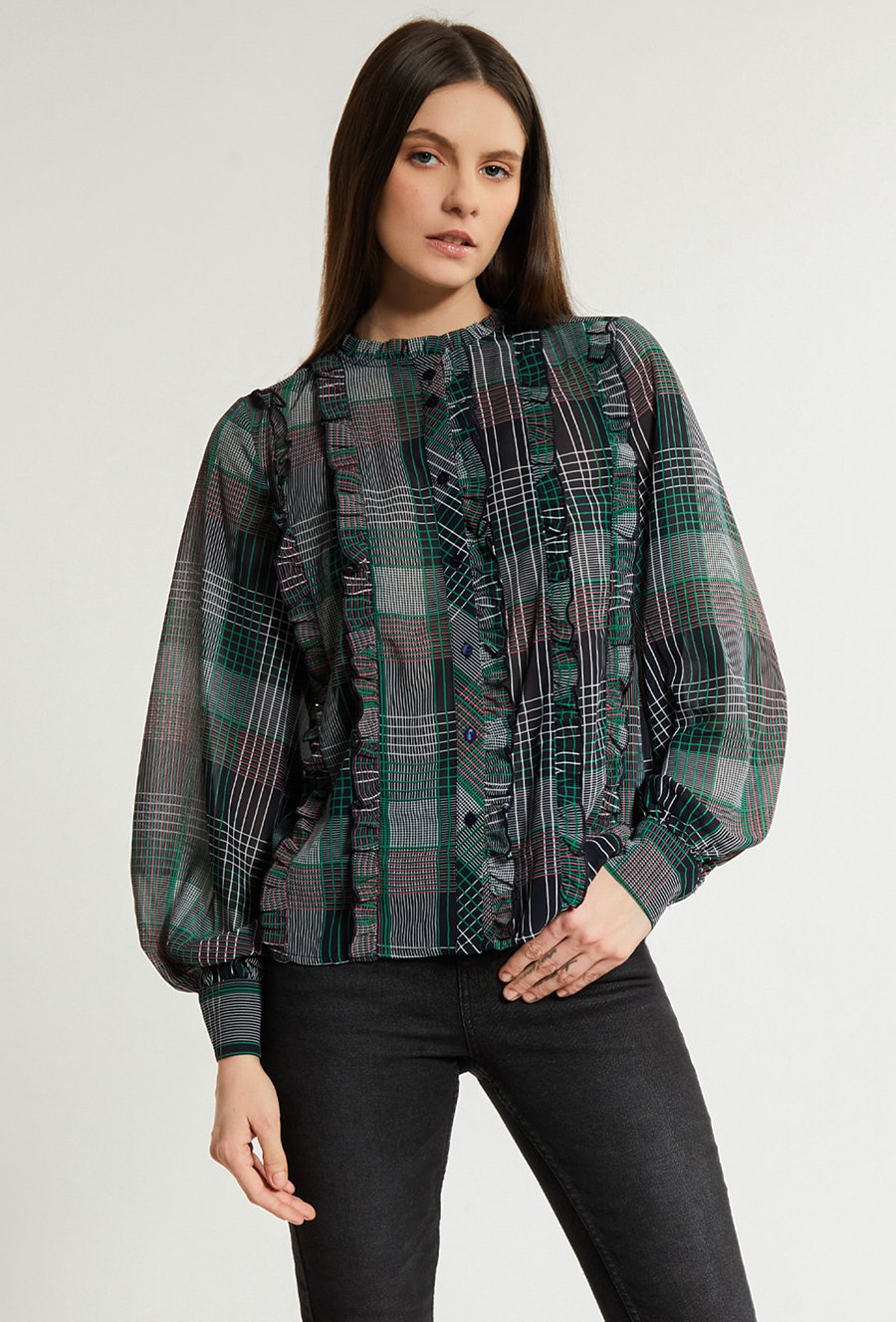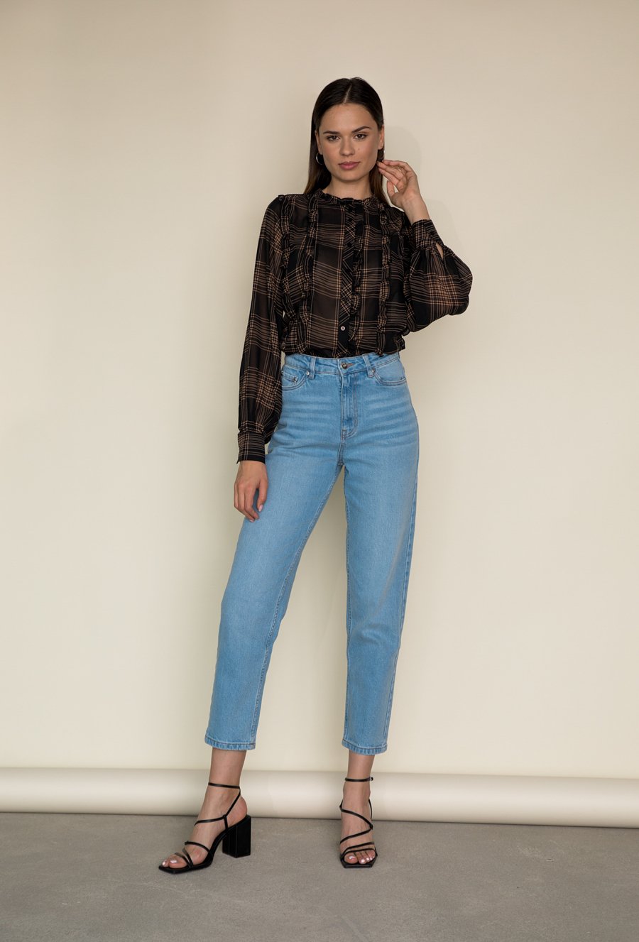 Wzorzysta bluzka ze stójką