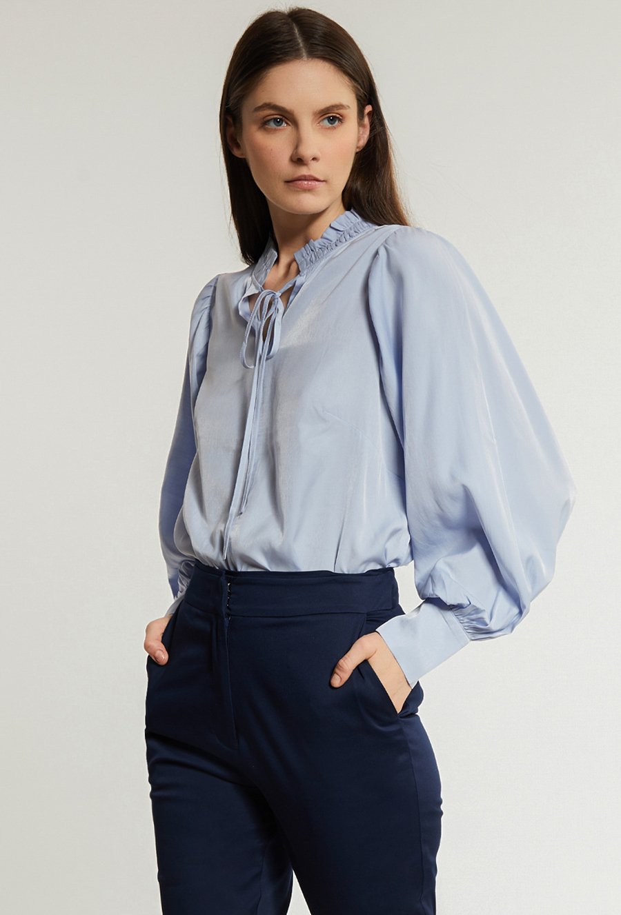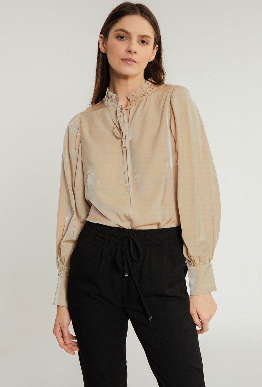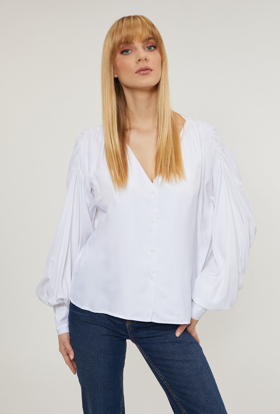 Satynowa bluzka z obszernym rękawem