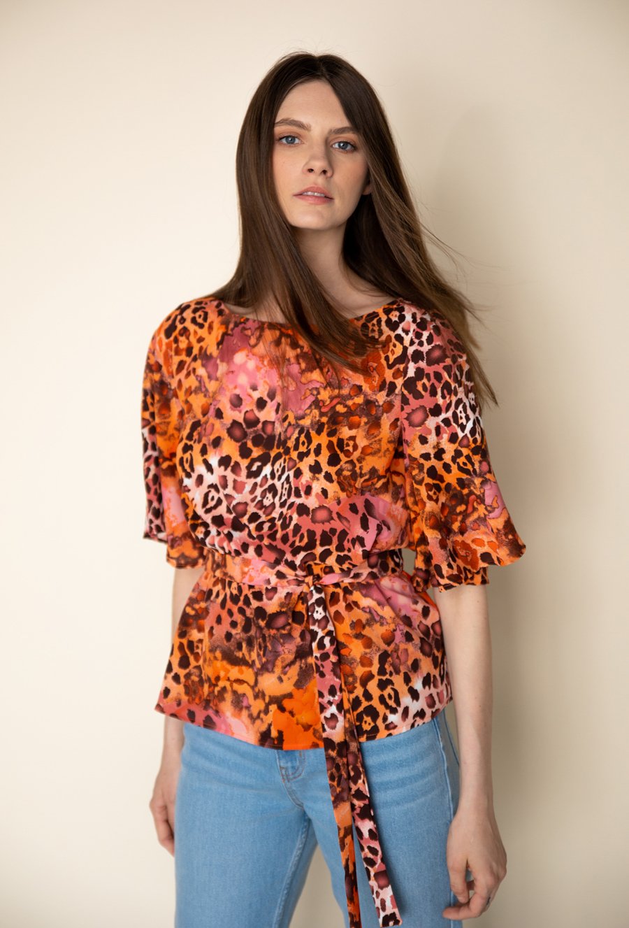 Satynowa bluzka wiązana w tali