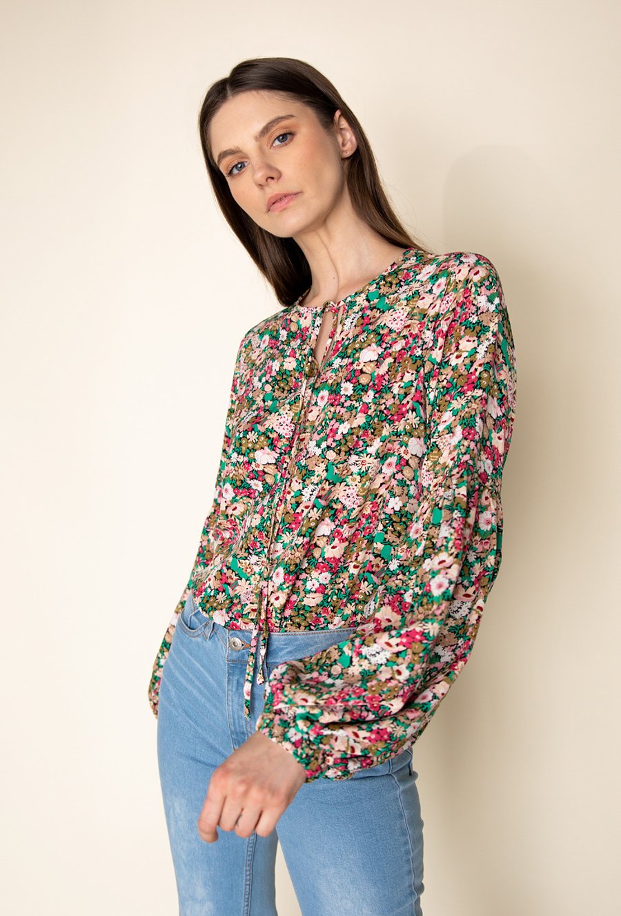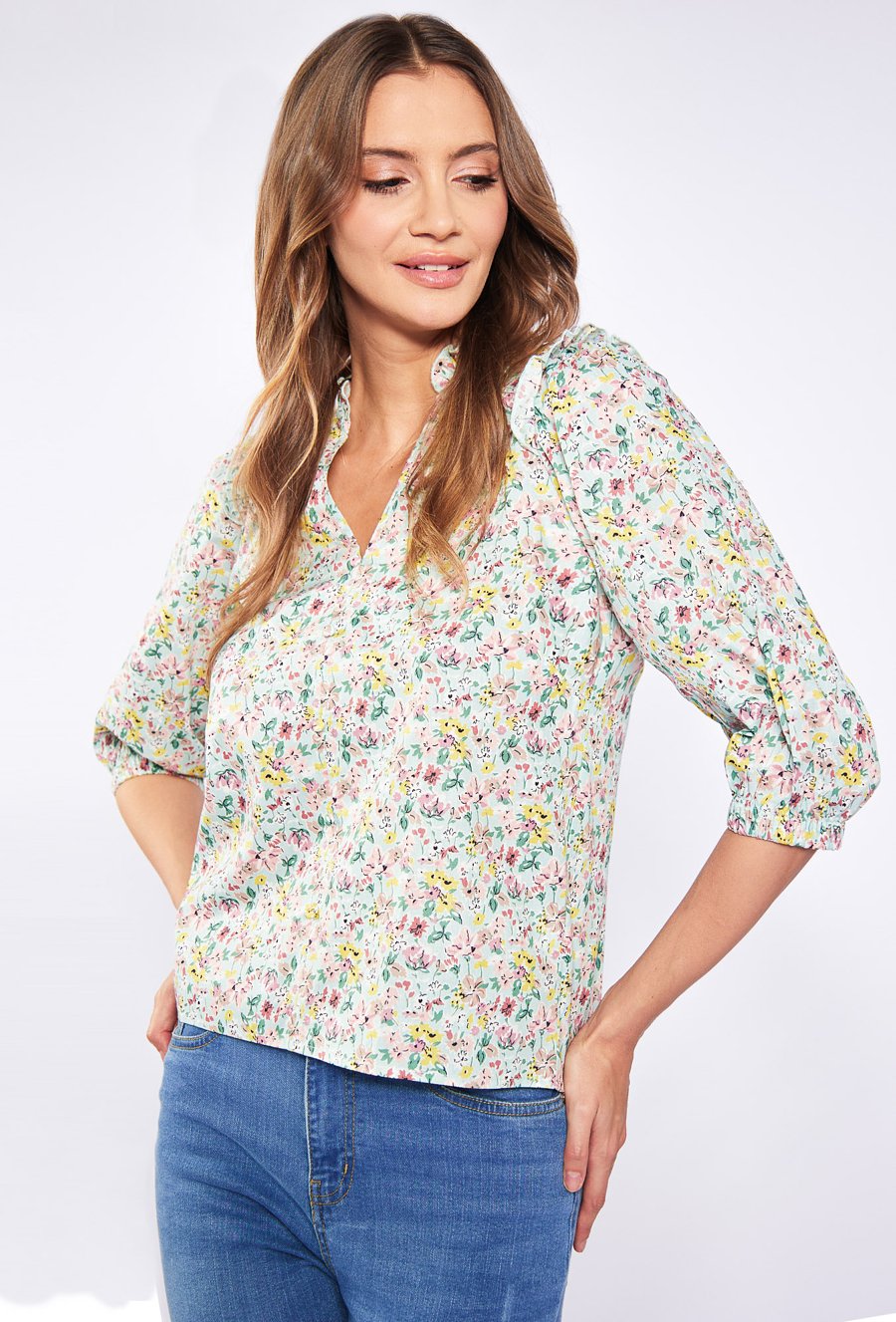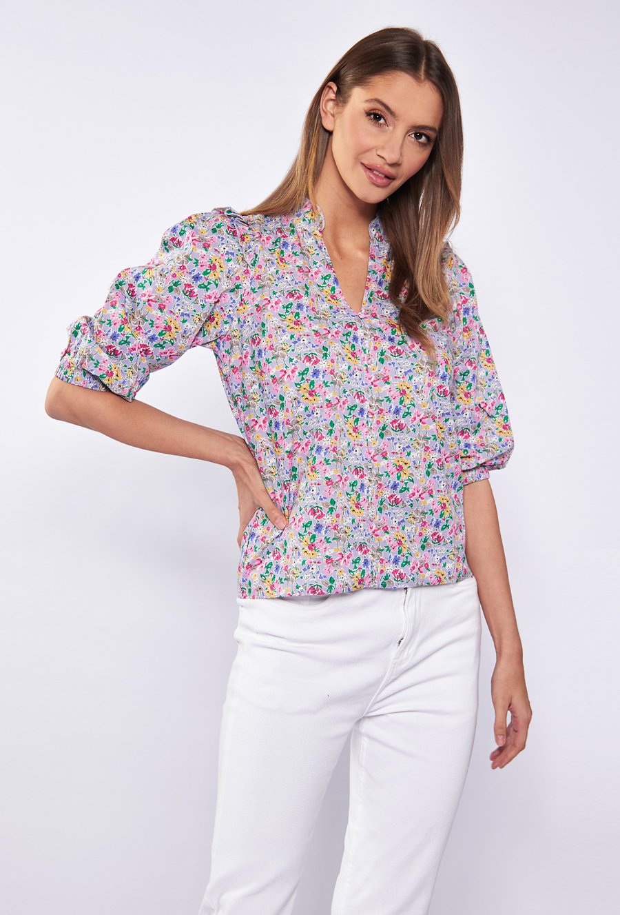 Bluzka w drobne kwiaty z bufkami na rękawie