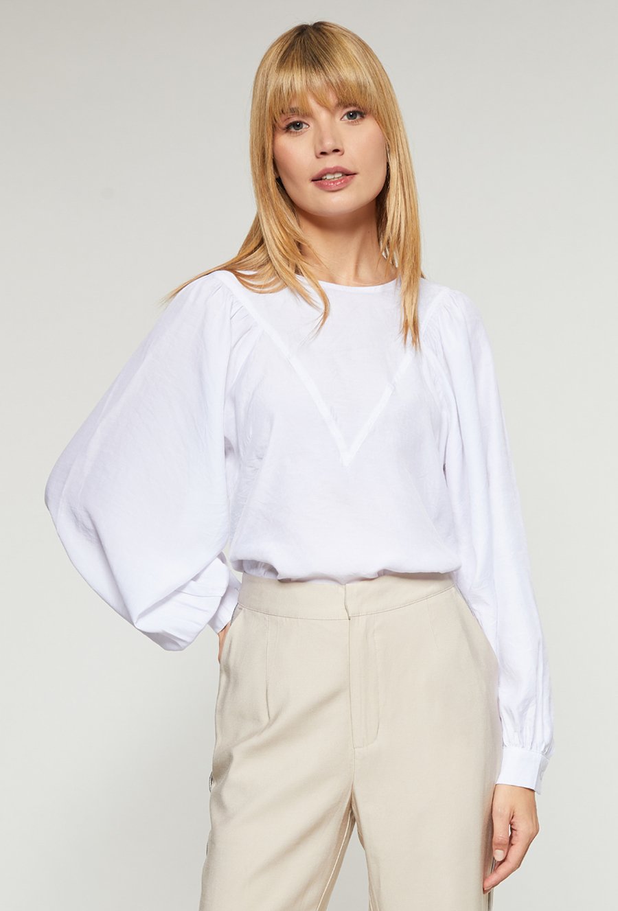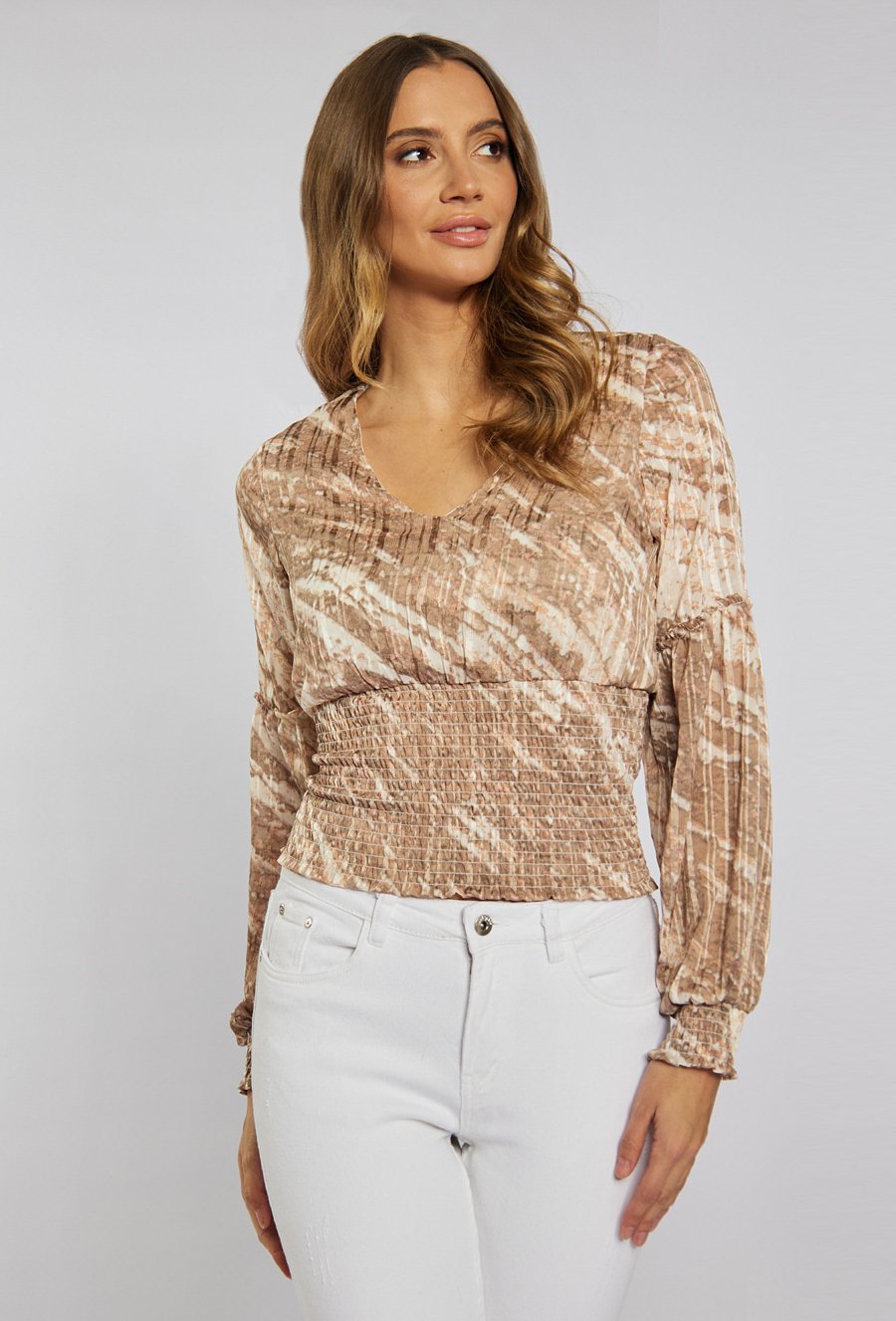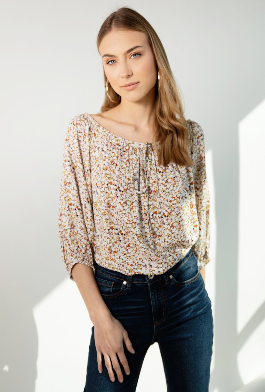 Bluzka w drobne kwiaty z bufkami na rękawie