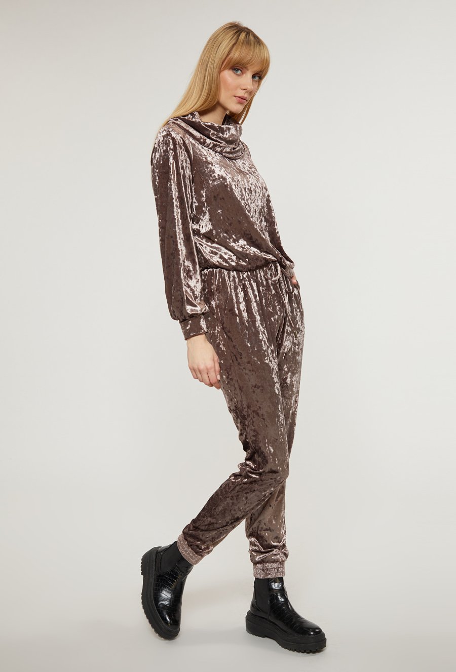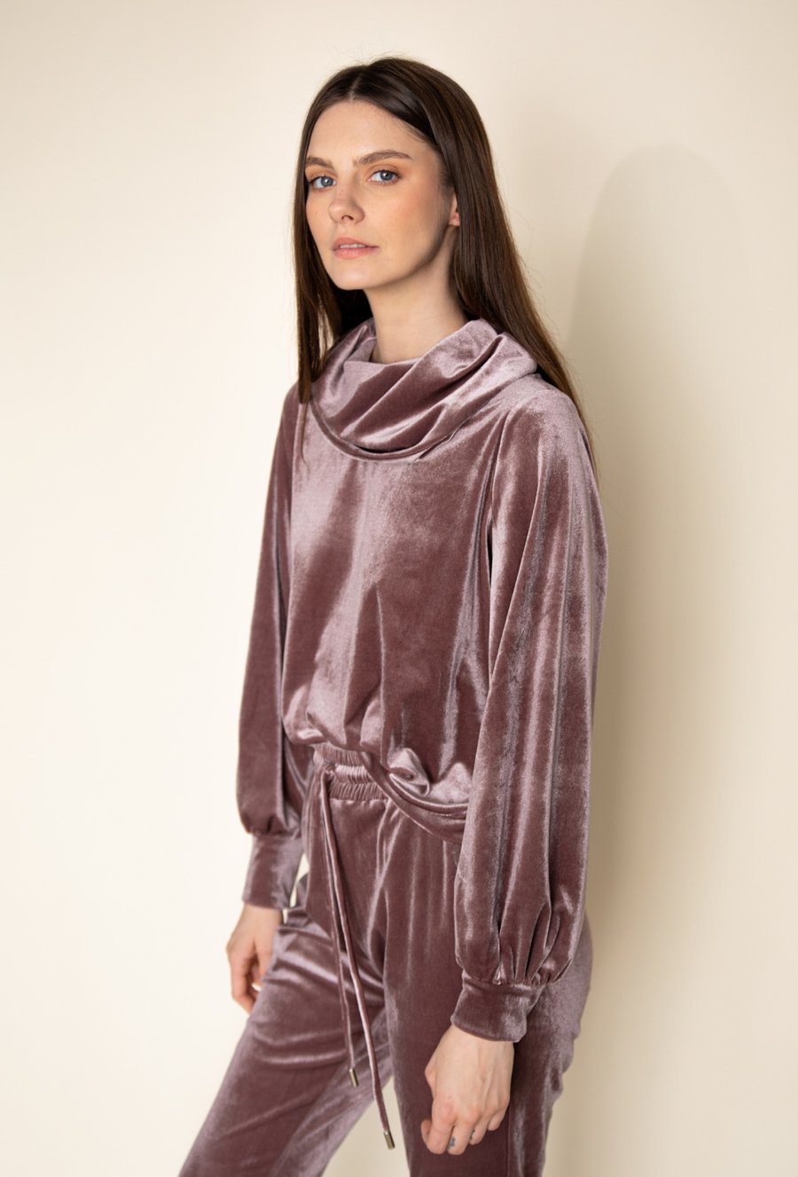 Welurowa bluza z szerokim golfem