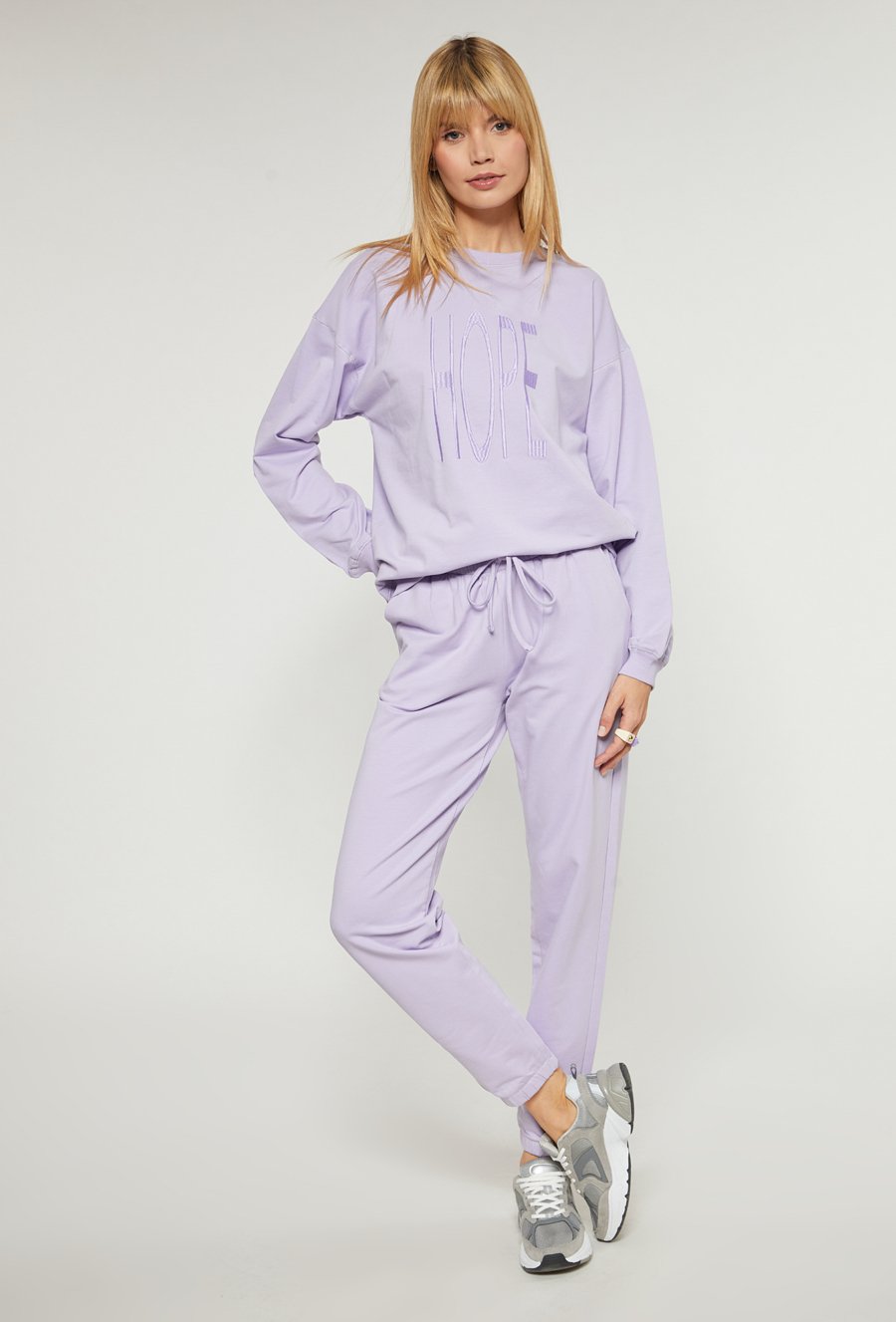 Liliowa bluza z napisem