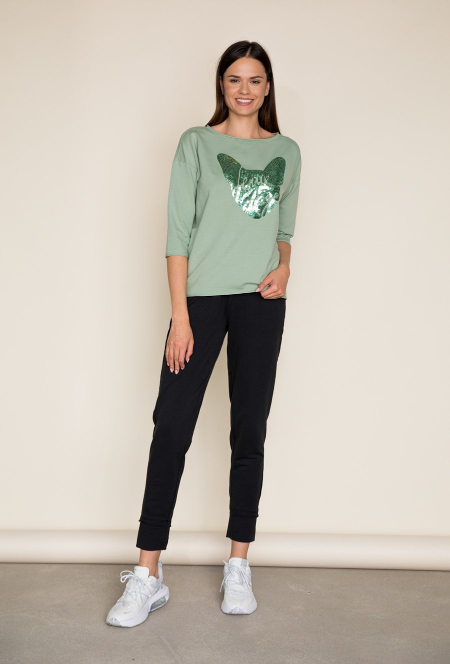 Zielona bluza z cekinową aplikacją