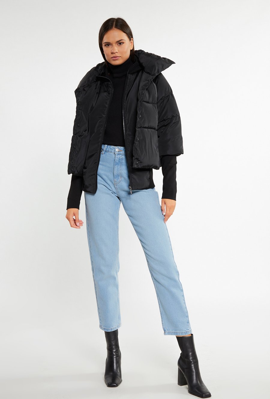 Krótka kurtka z wysoką stójką