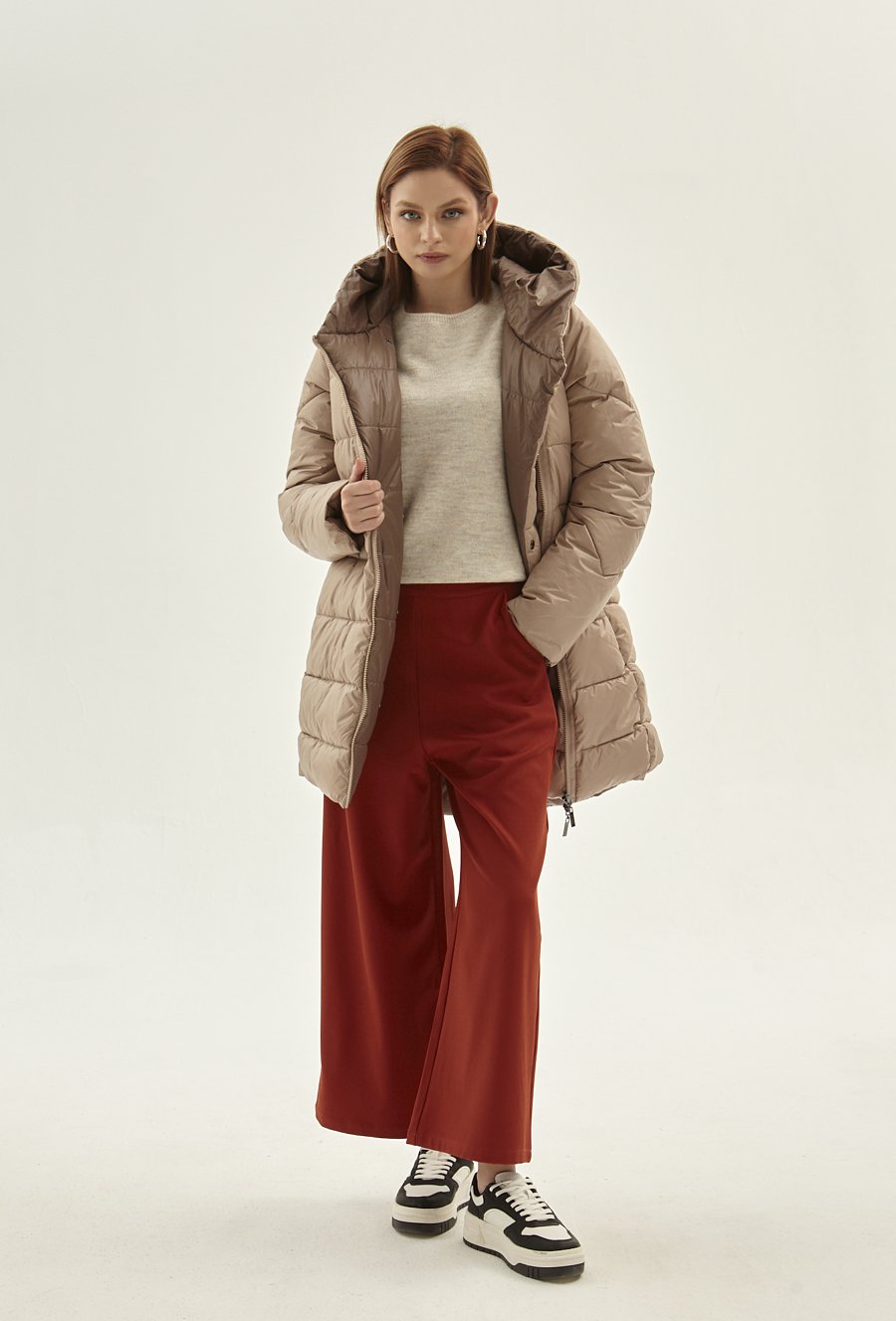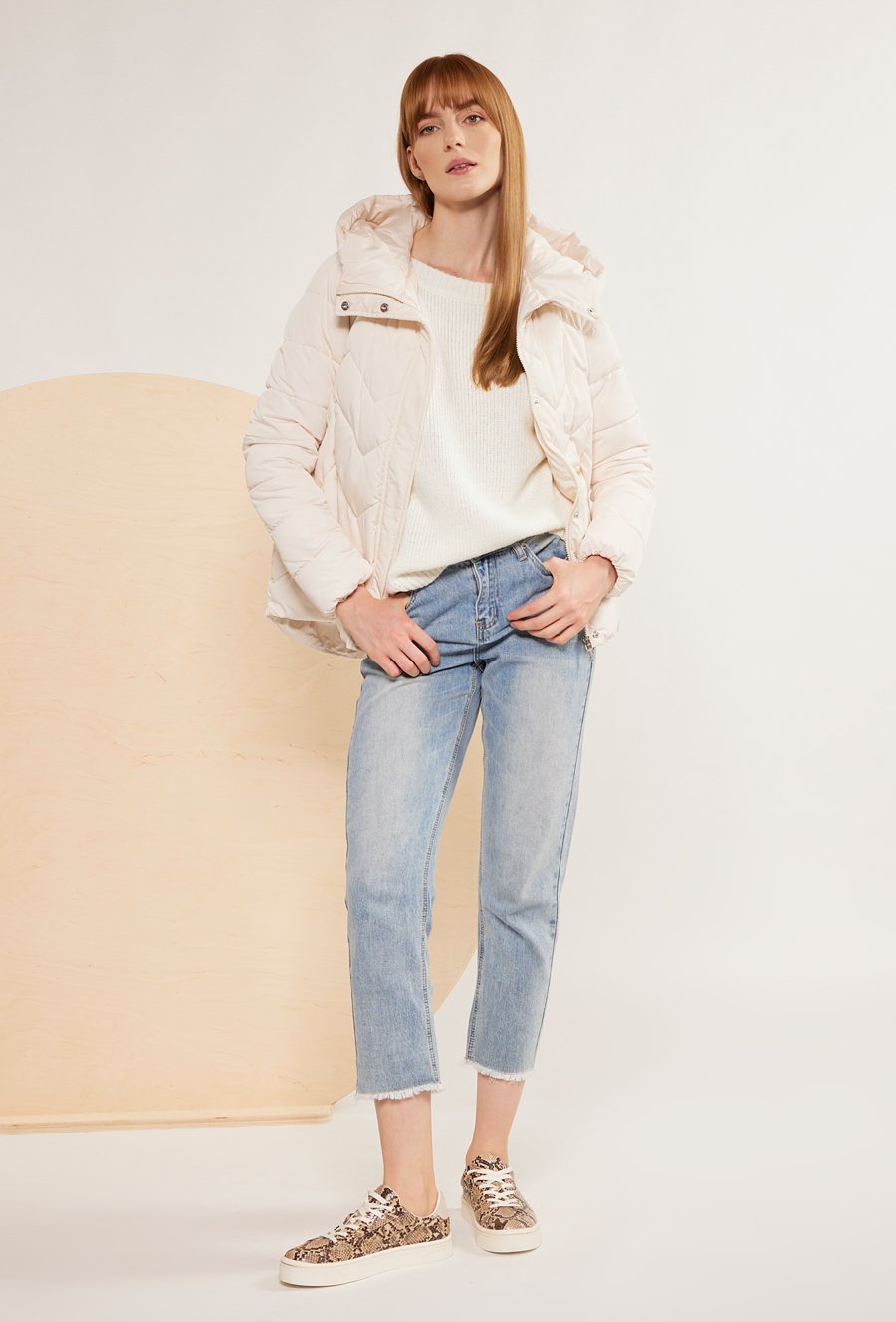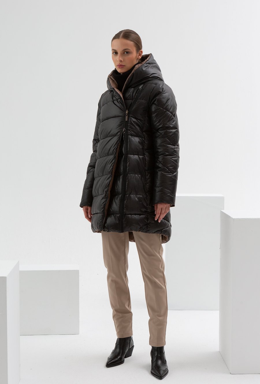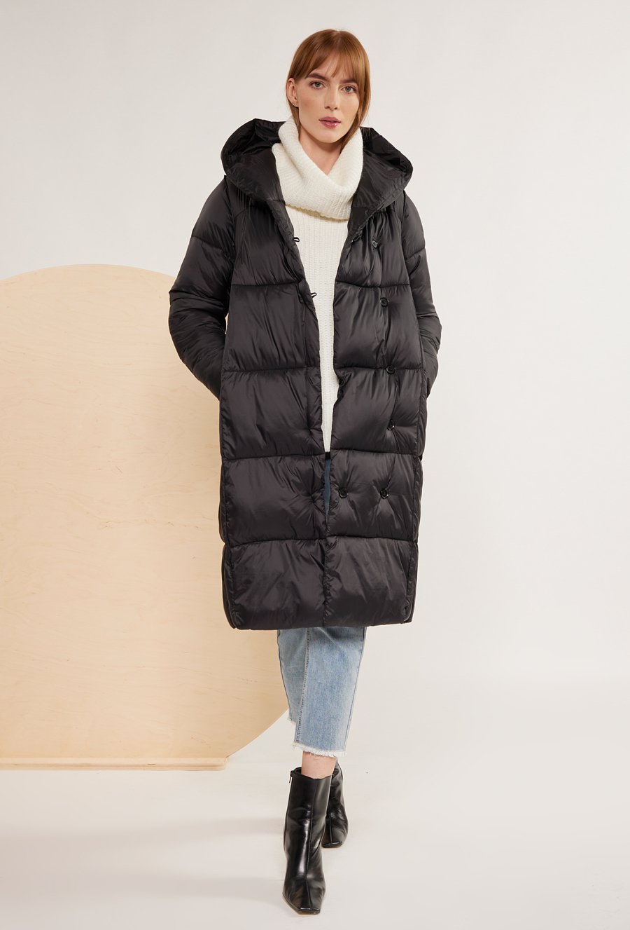 Długa pikowana kurtka z kapturem