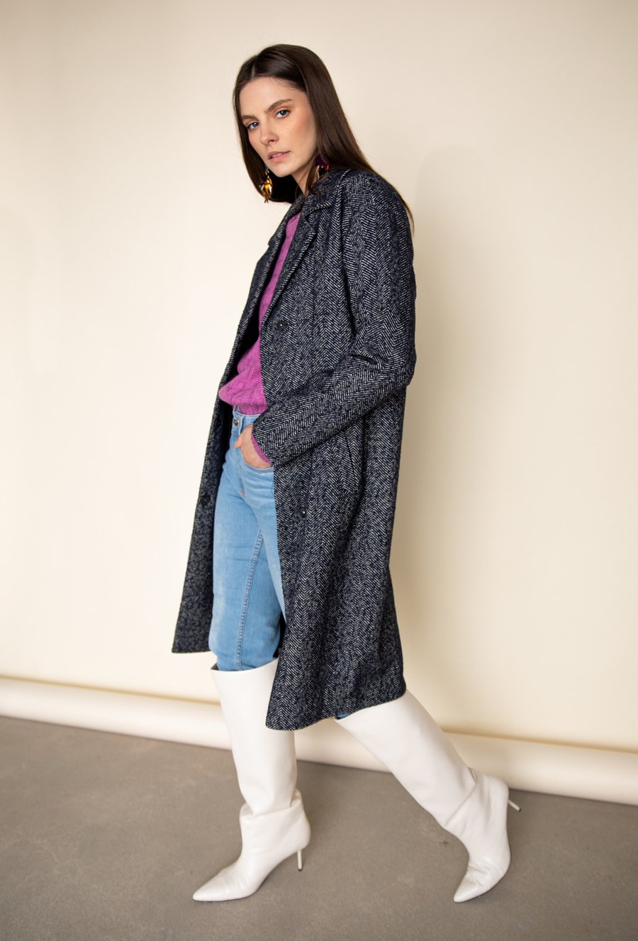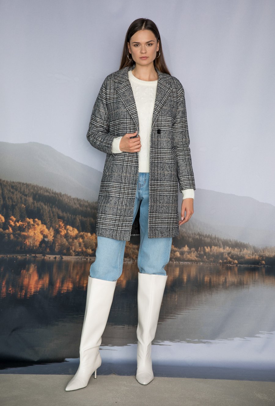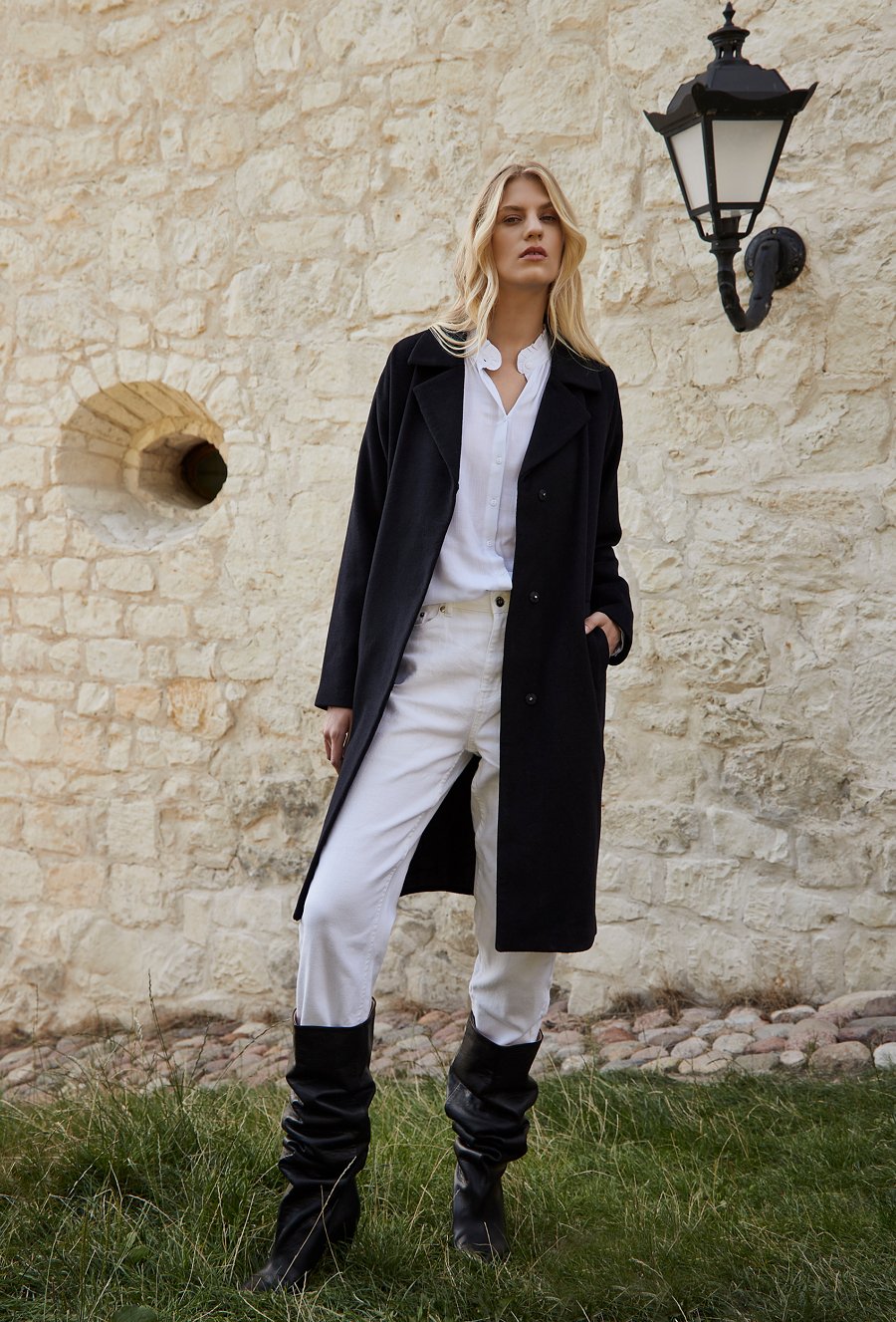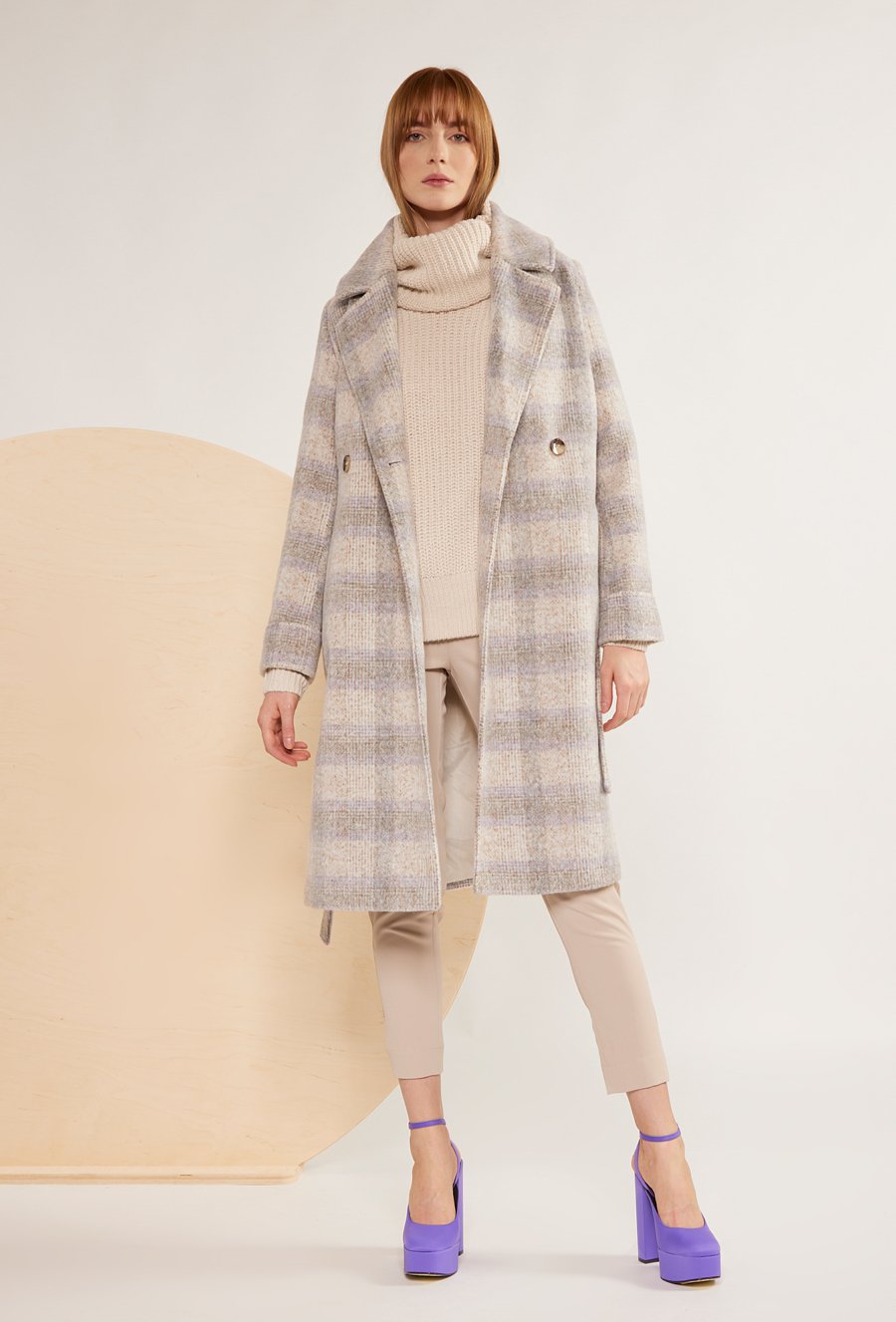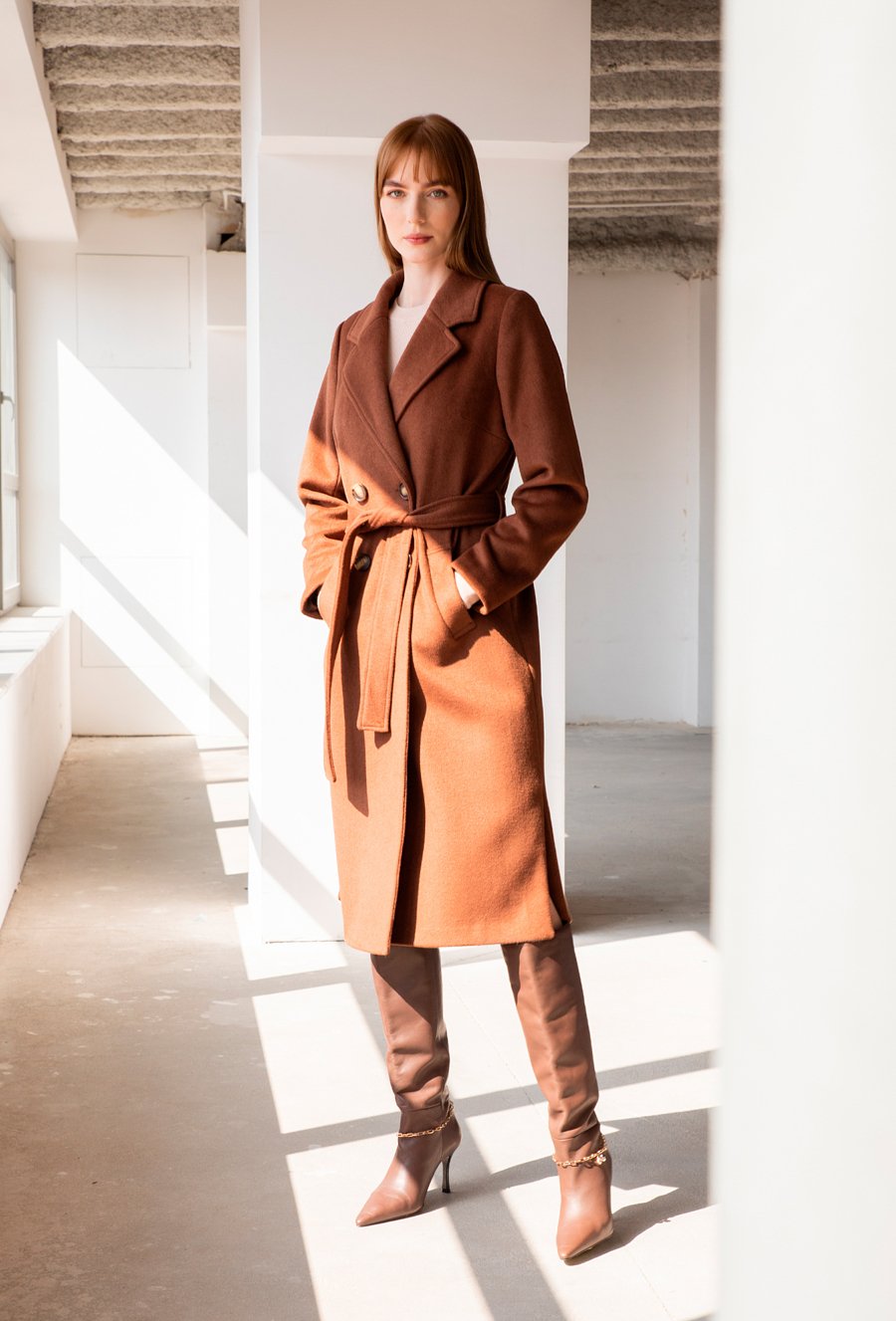 Karmelowy klasyczny płaszcz z domieszką wełny