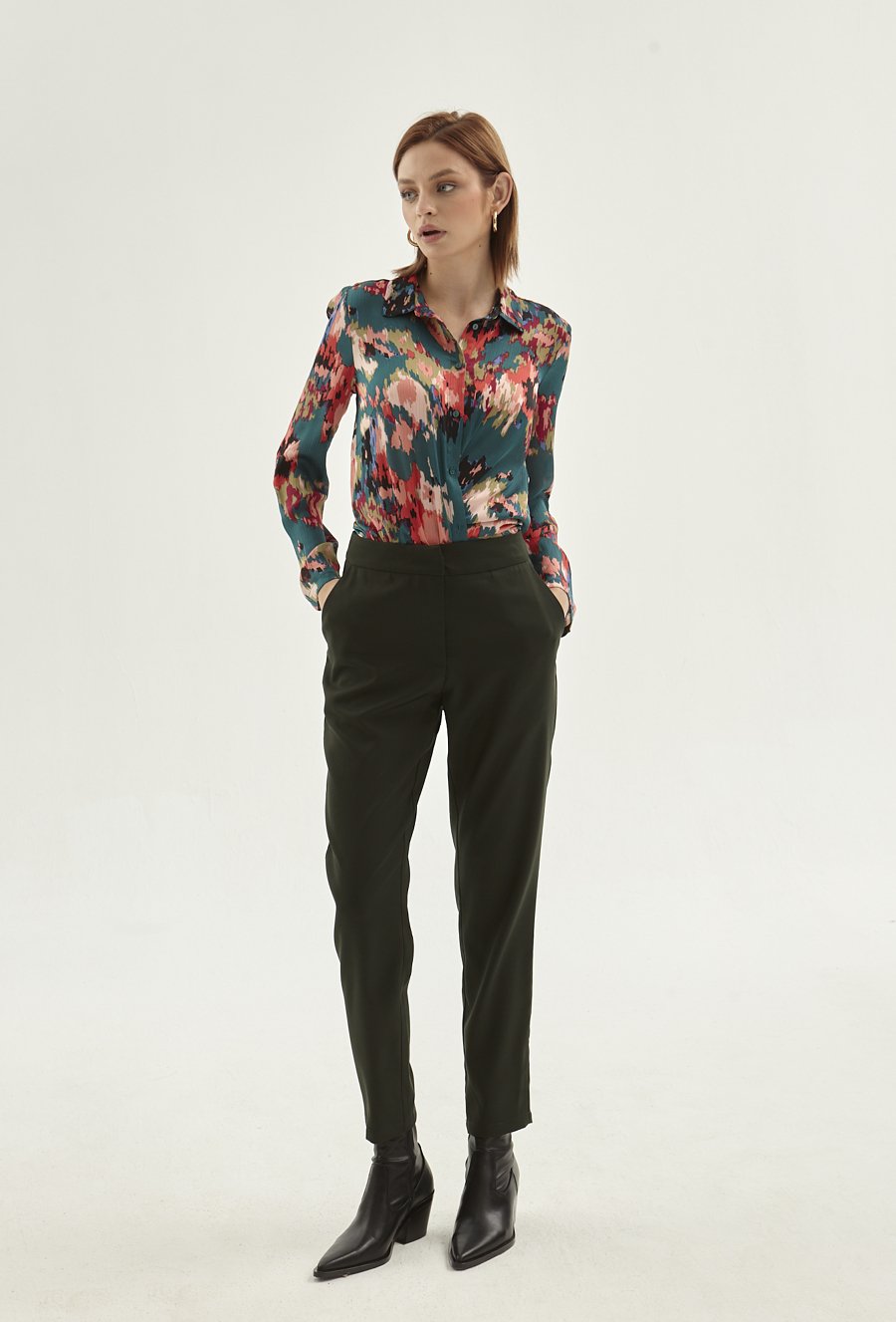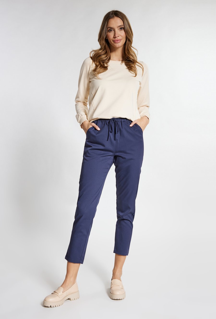 Wiskozowe spodnie z zaszewkami na nogawce