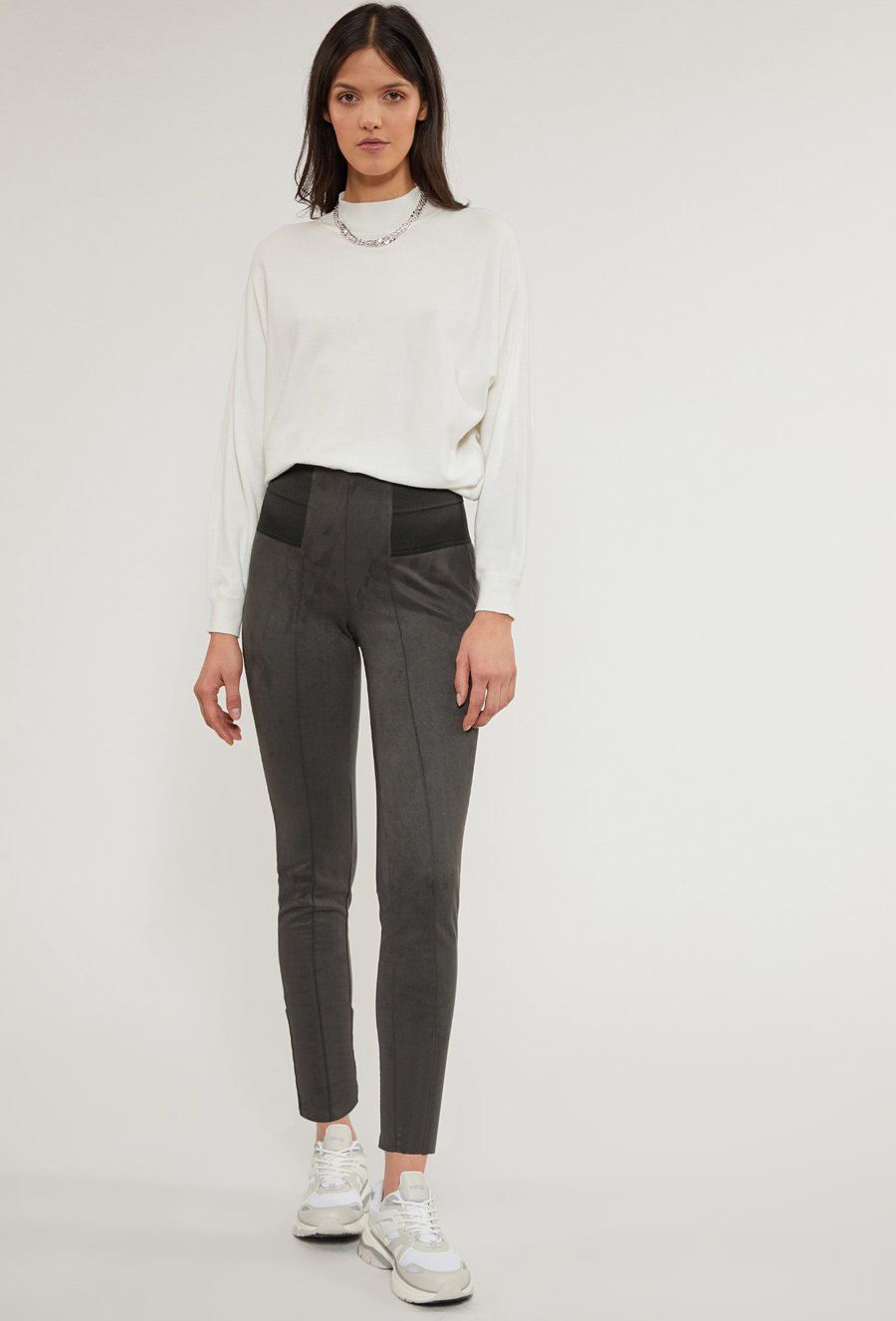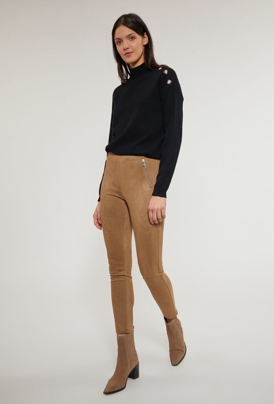 Zamszowe legginsy z zamkami