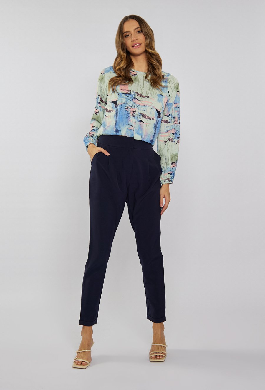 Spodnie cygaretki z wysokim stanem