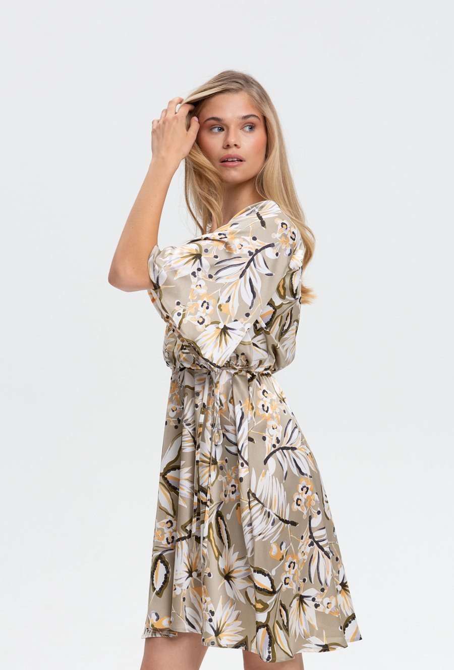 Satynowa sukienka w kwiaty