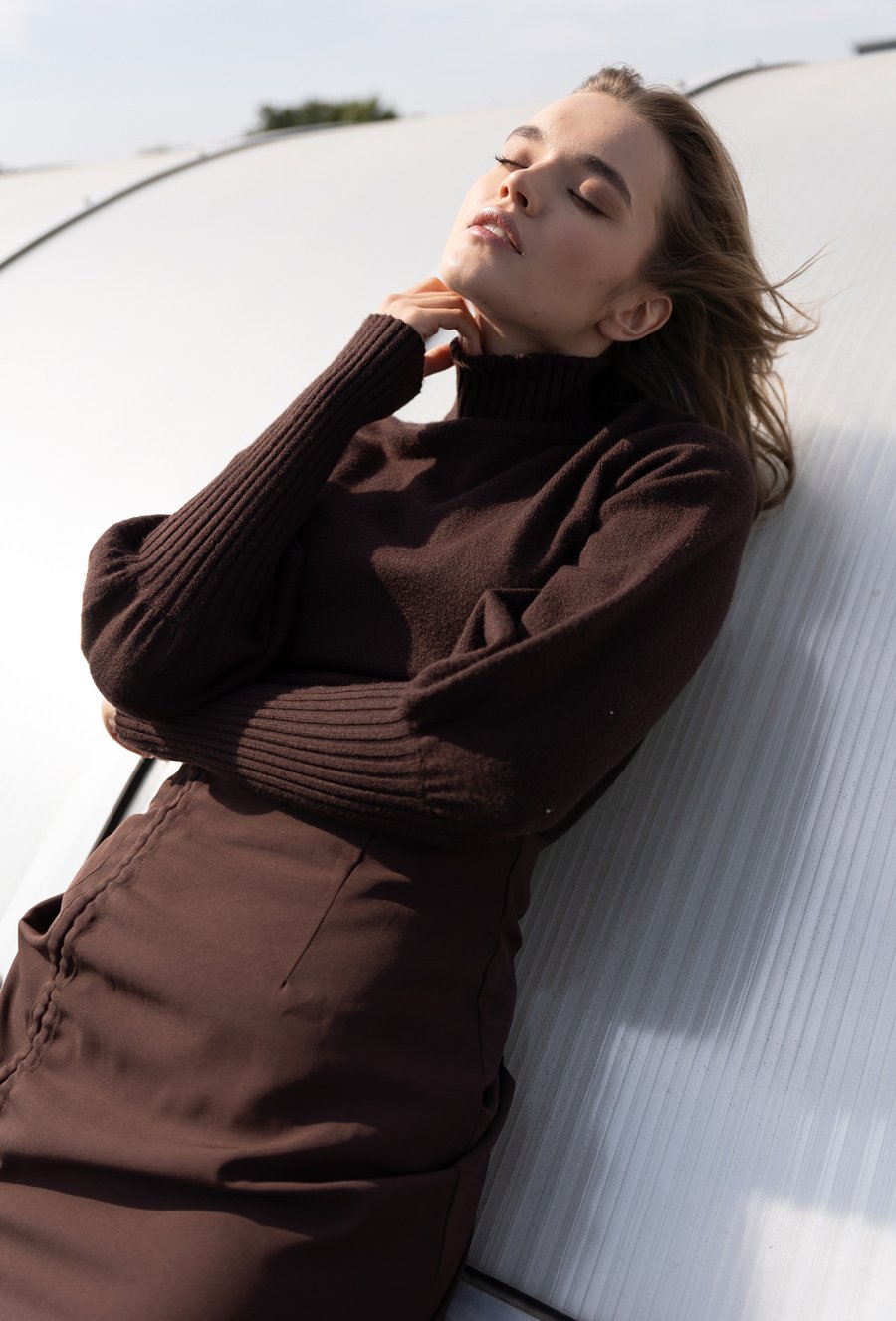 Sweter z prążkowanej tkaniny