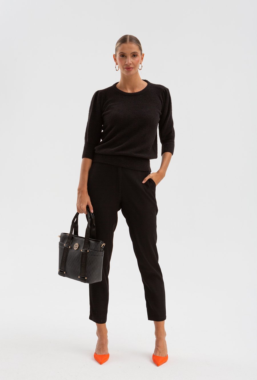 Sweter z efektem moheru bufiastym rękawem