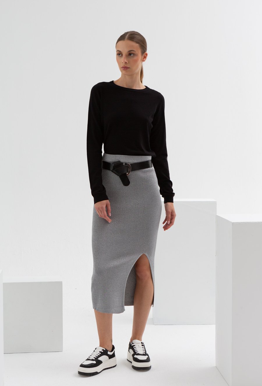Sweter z prążkowanej dzianiny