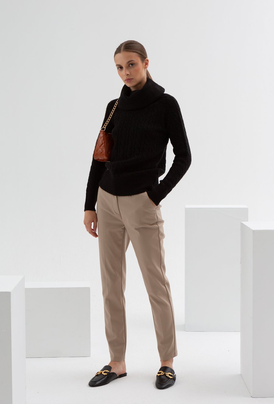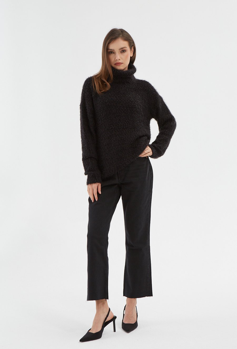 Czarny dopasowany sweter z golfem