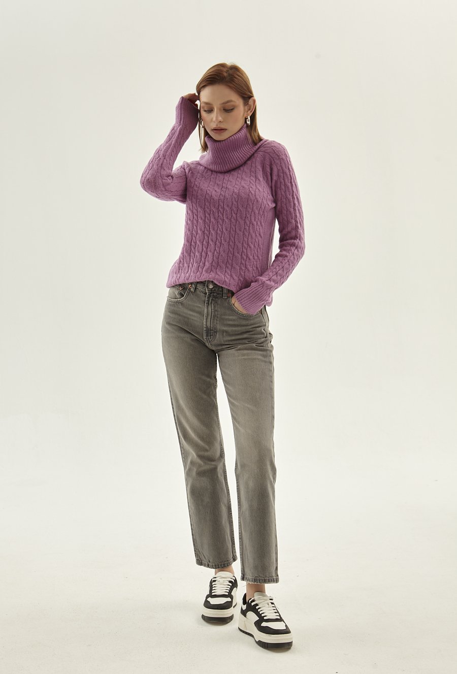 Fioletowy sweter z golfem