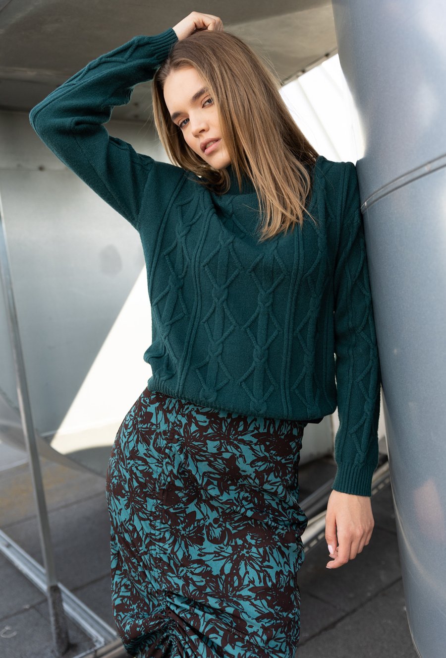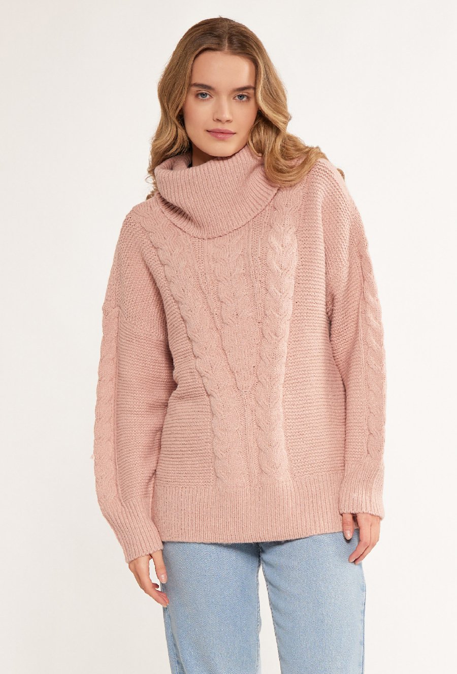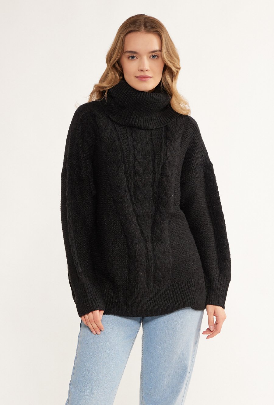 Ciepły golf w warkoczowy splot