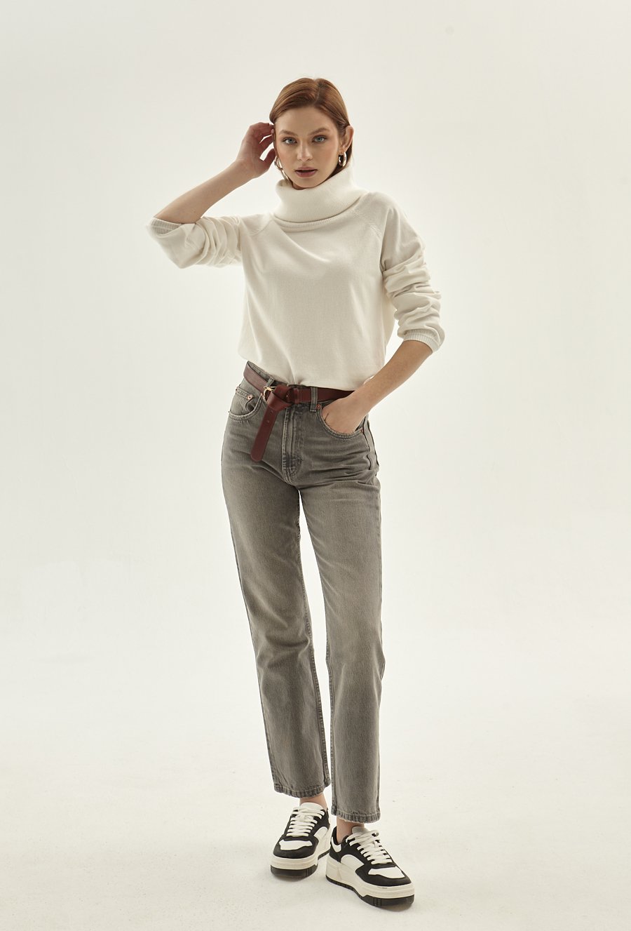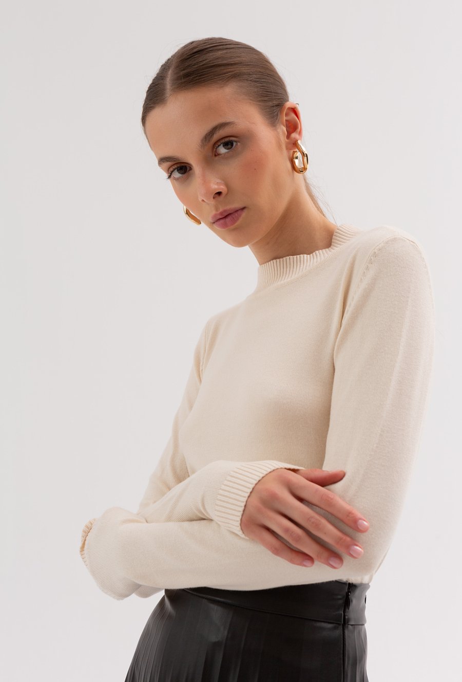 Gładki sweter z golfem