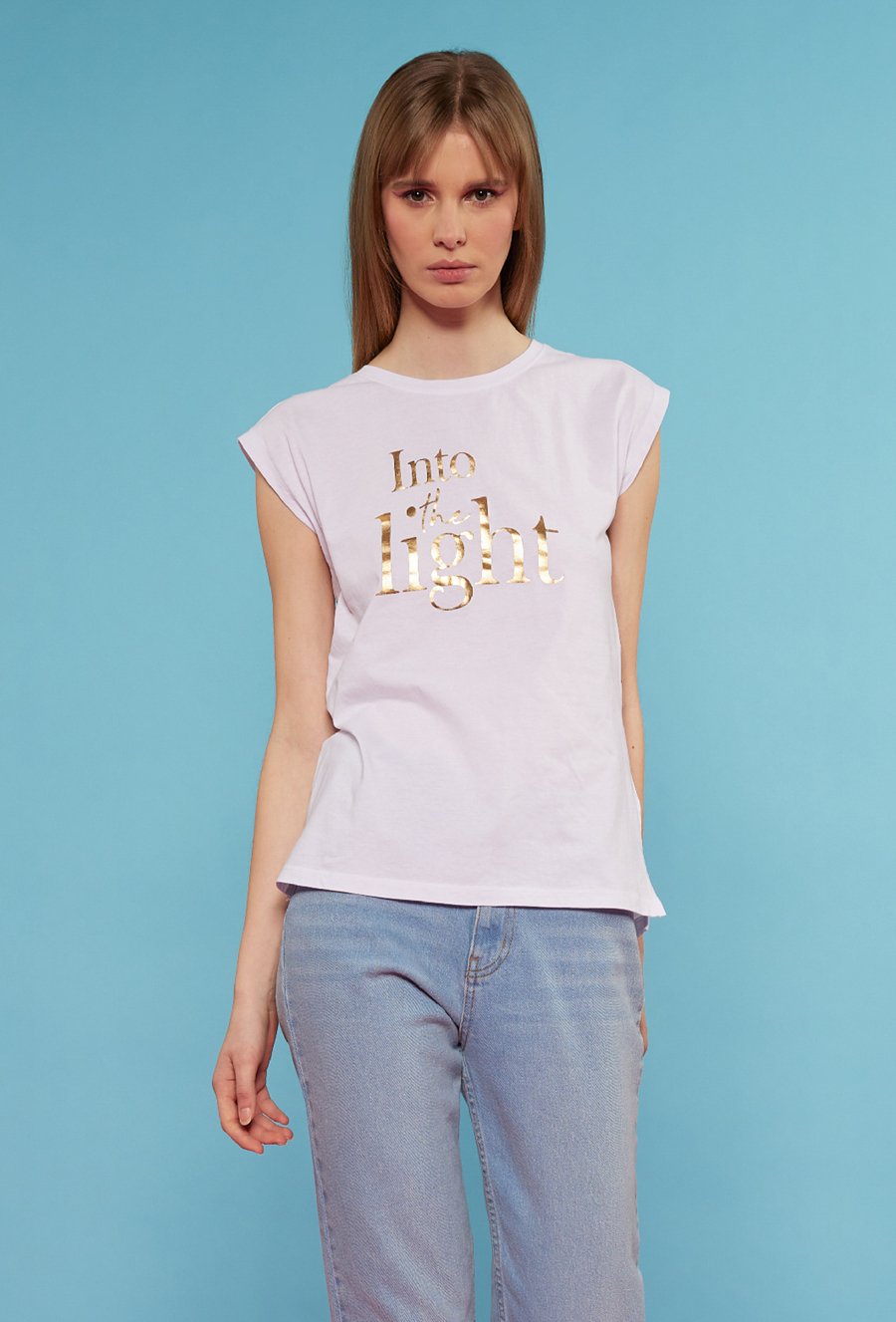 T-shirt ze złotym napisem