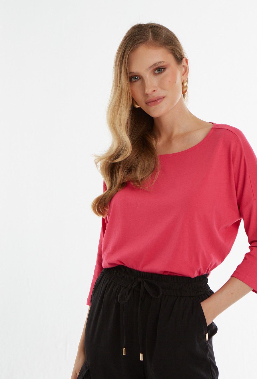 Różowa bluzka z rękawem 3/4
