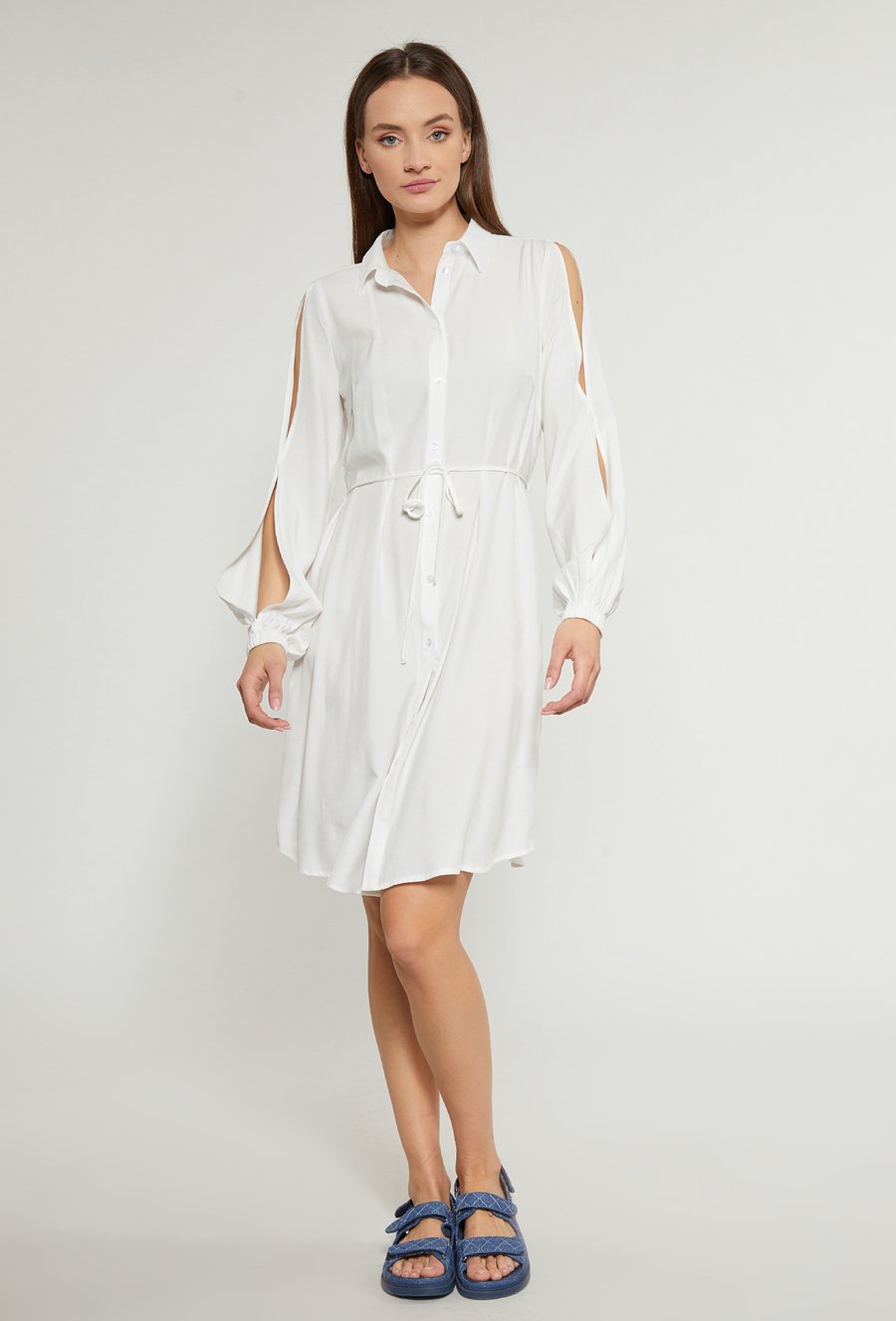 Biała szmizjerka z rozcięciem na rękawach