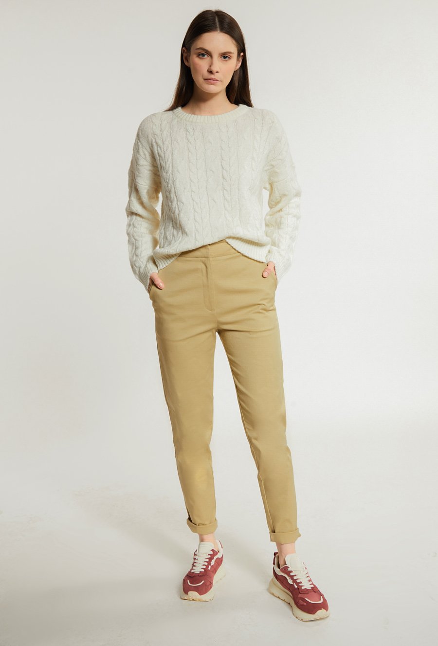 Beżowe spodnie z wysokim stanem