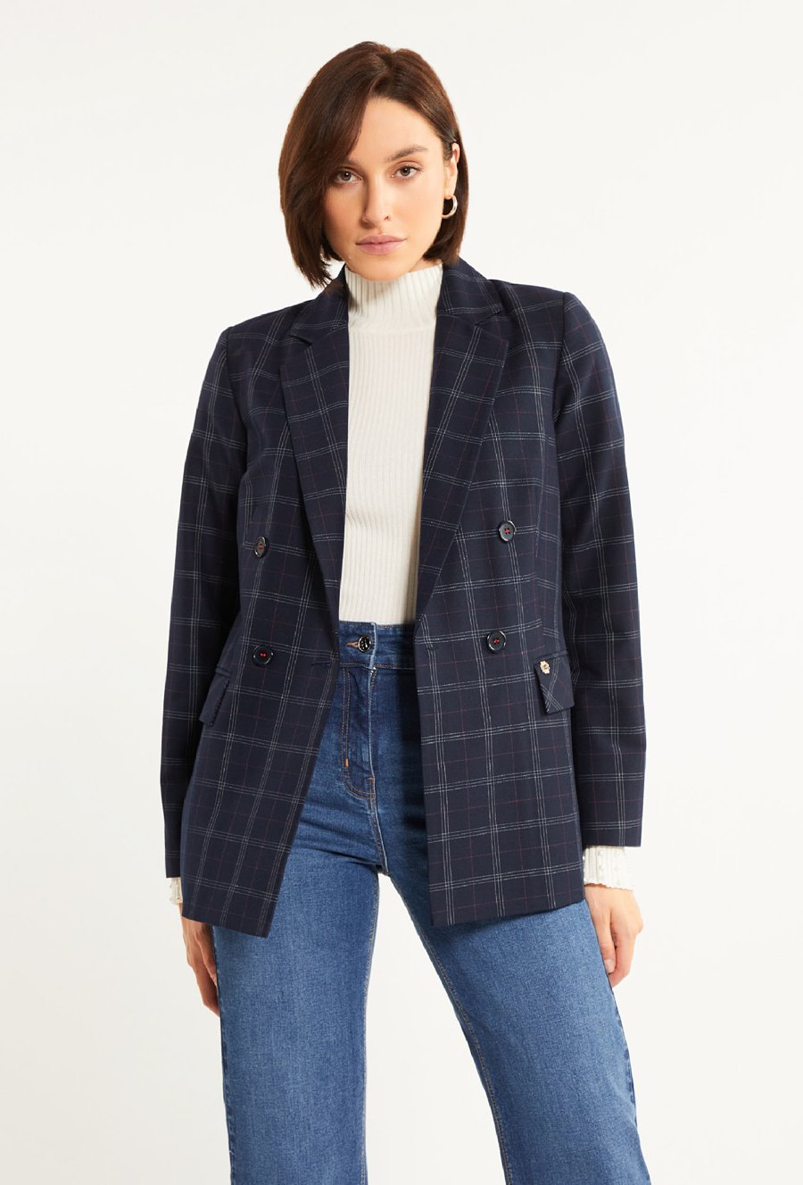 Klasyczna, dwurzędowa marynarka z wzorem w kratę