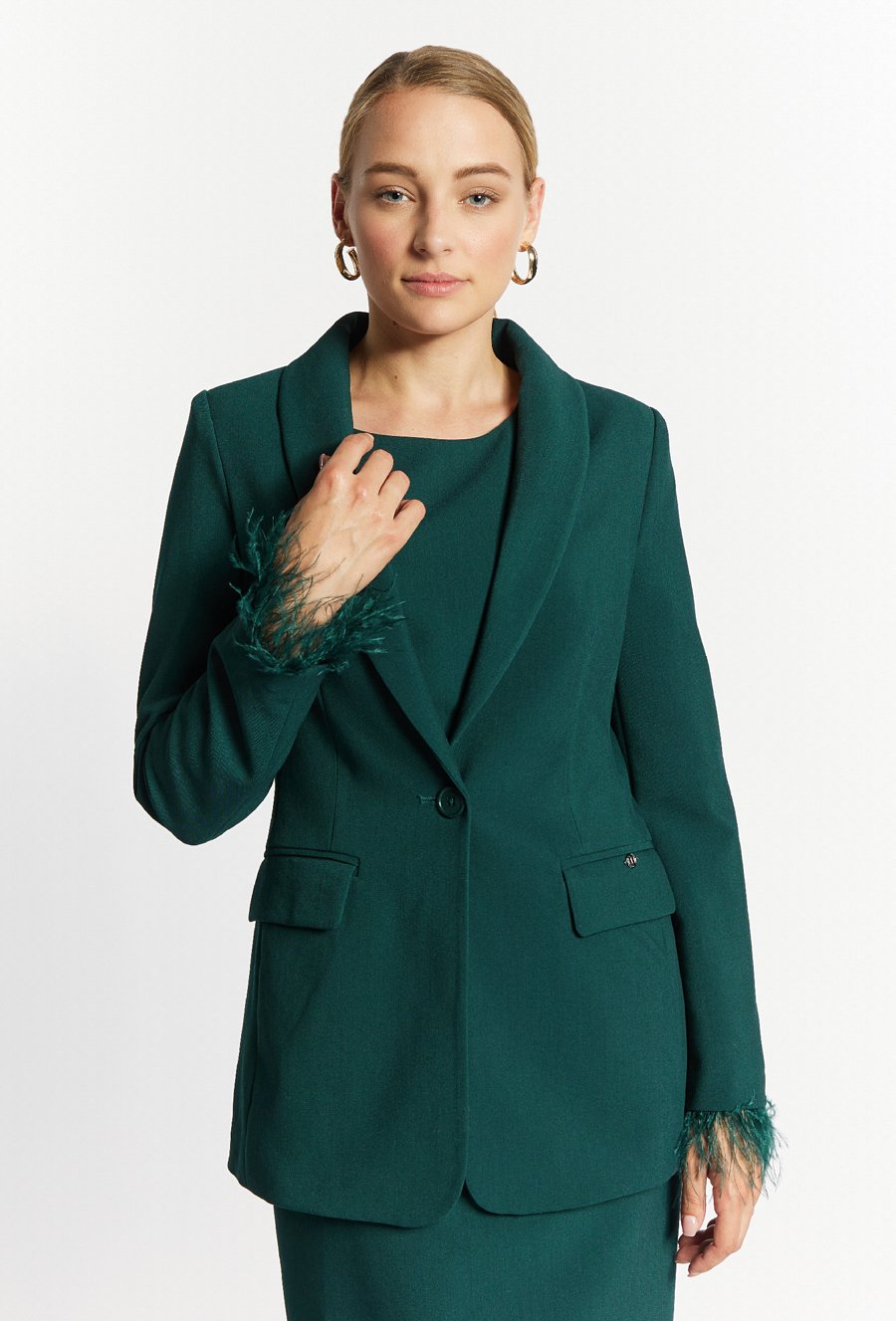 Jednorzędowa marynarka z piórami