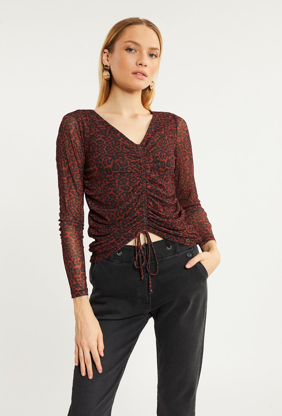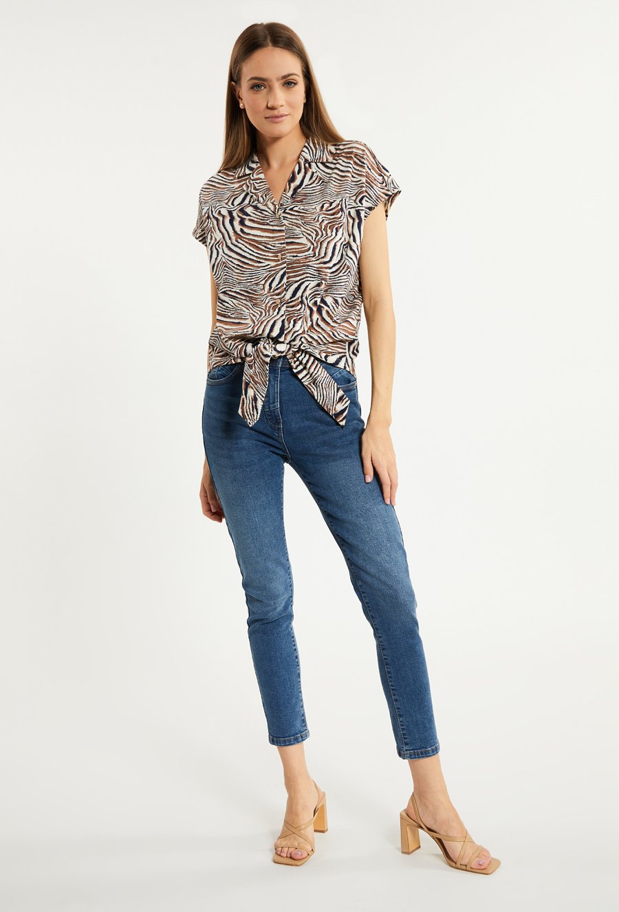 Wzorzysta bluzka damska z wiązaniem u dołu