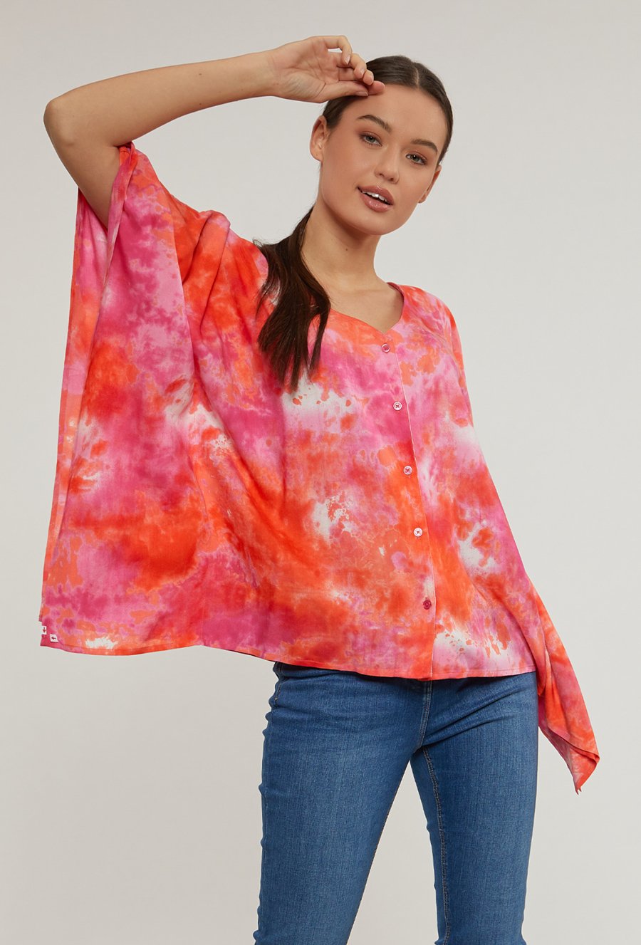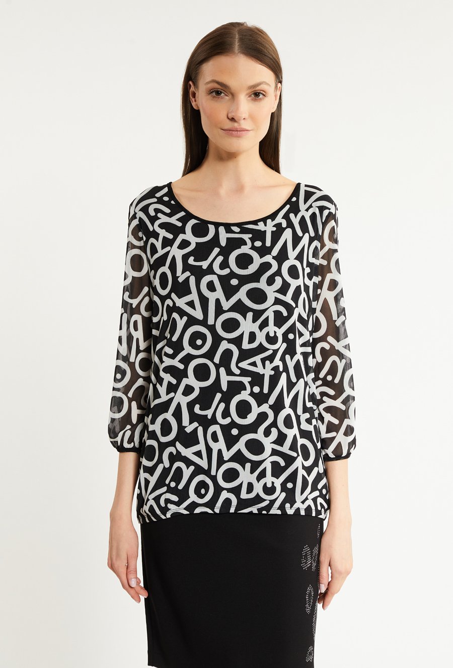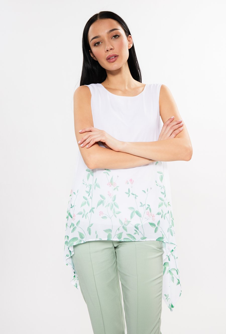 Wzorzysta bluzka z asymetrycznym dołem