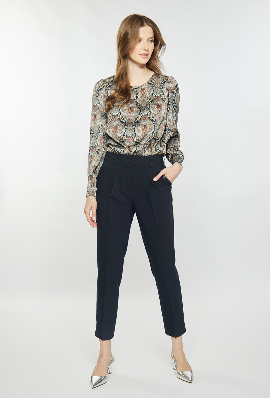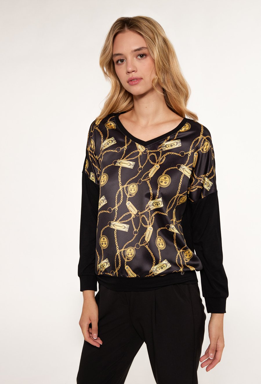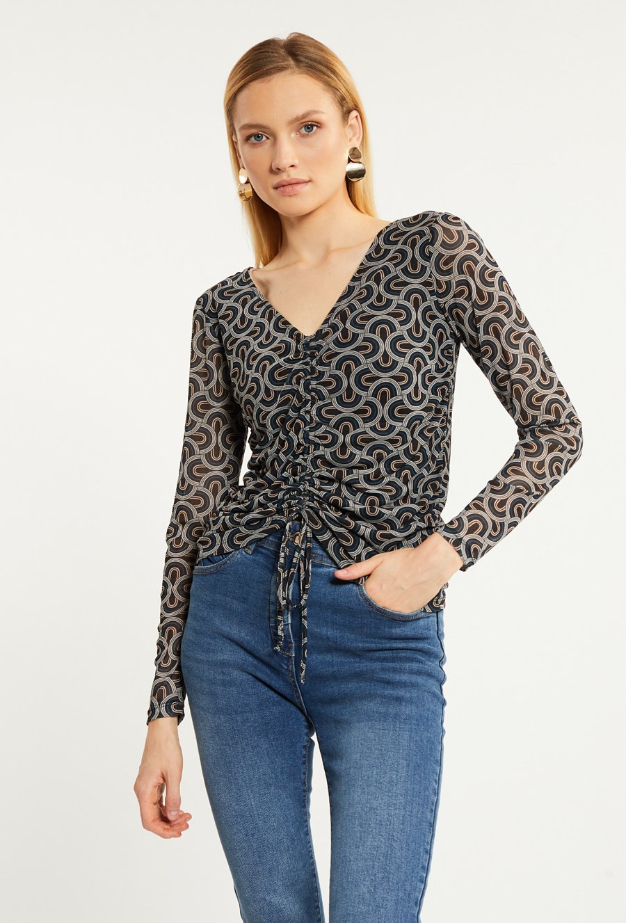 Wzorzysta bluzka z długim rękawem