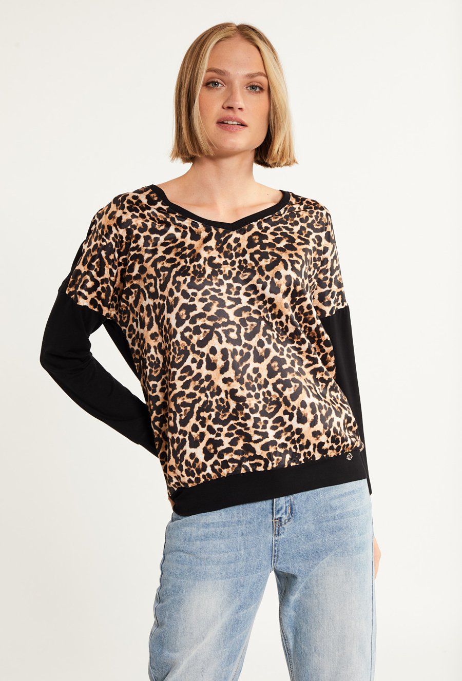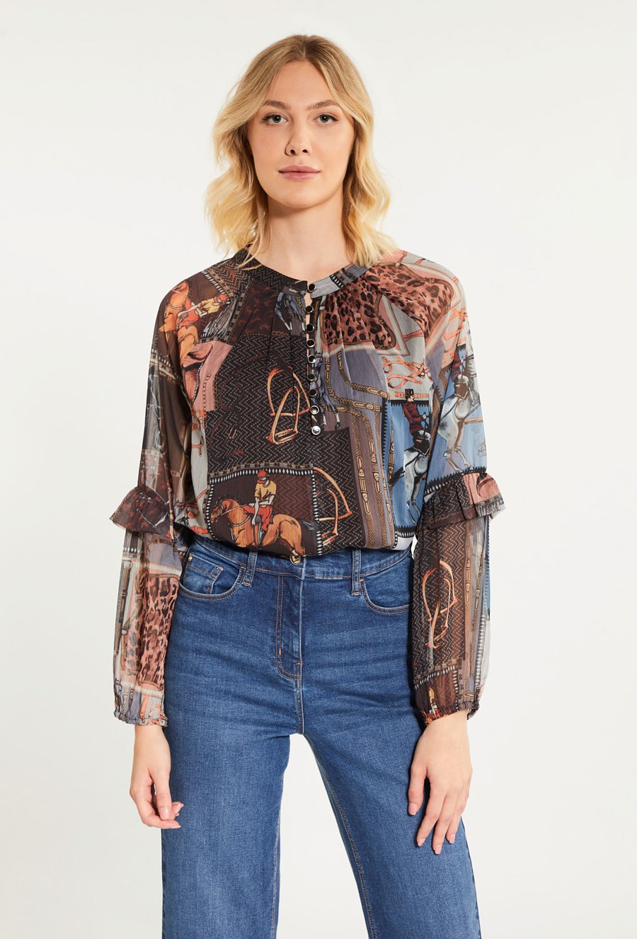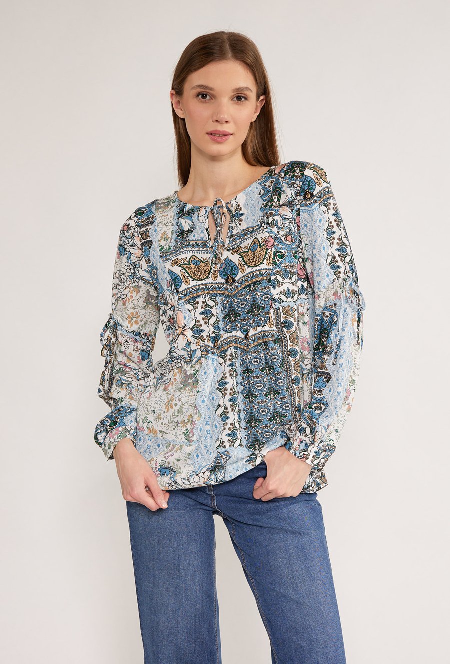 Wzorzysta bluzka z długim rękawem