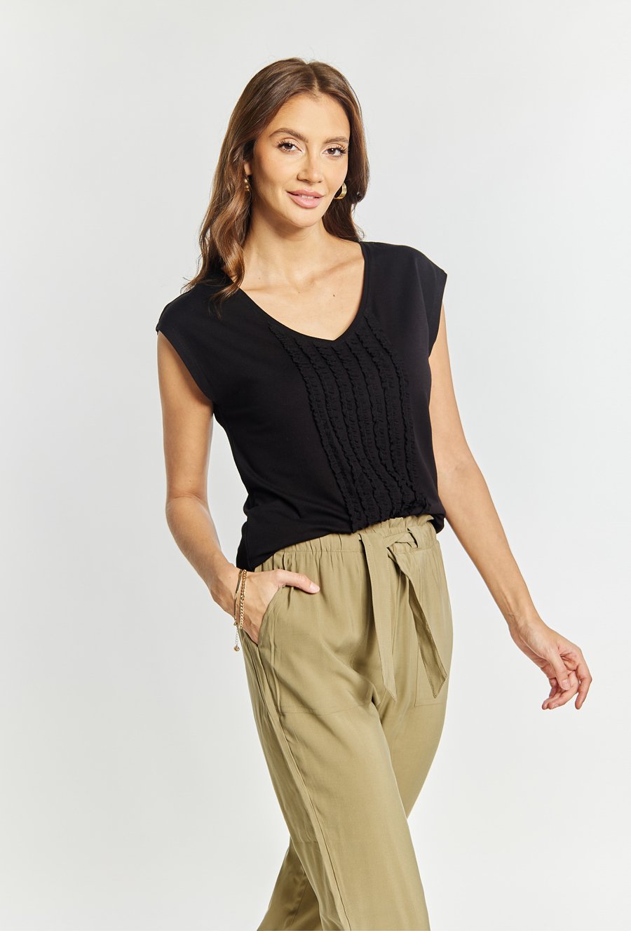 T-shirt damski z ozdobnymi wiązaniami