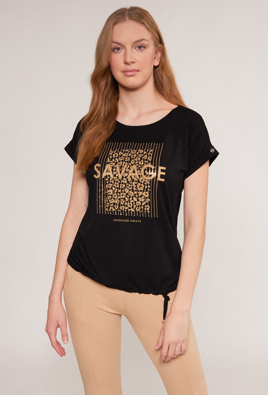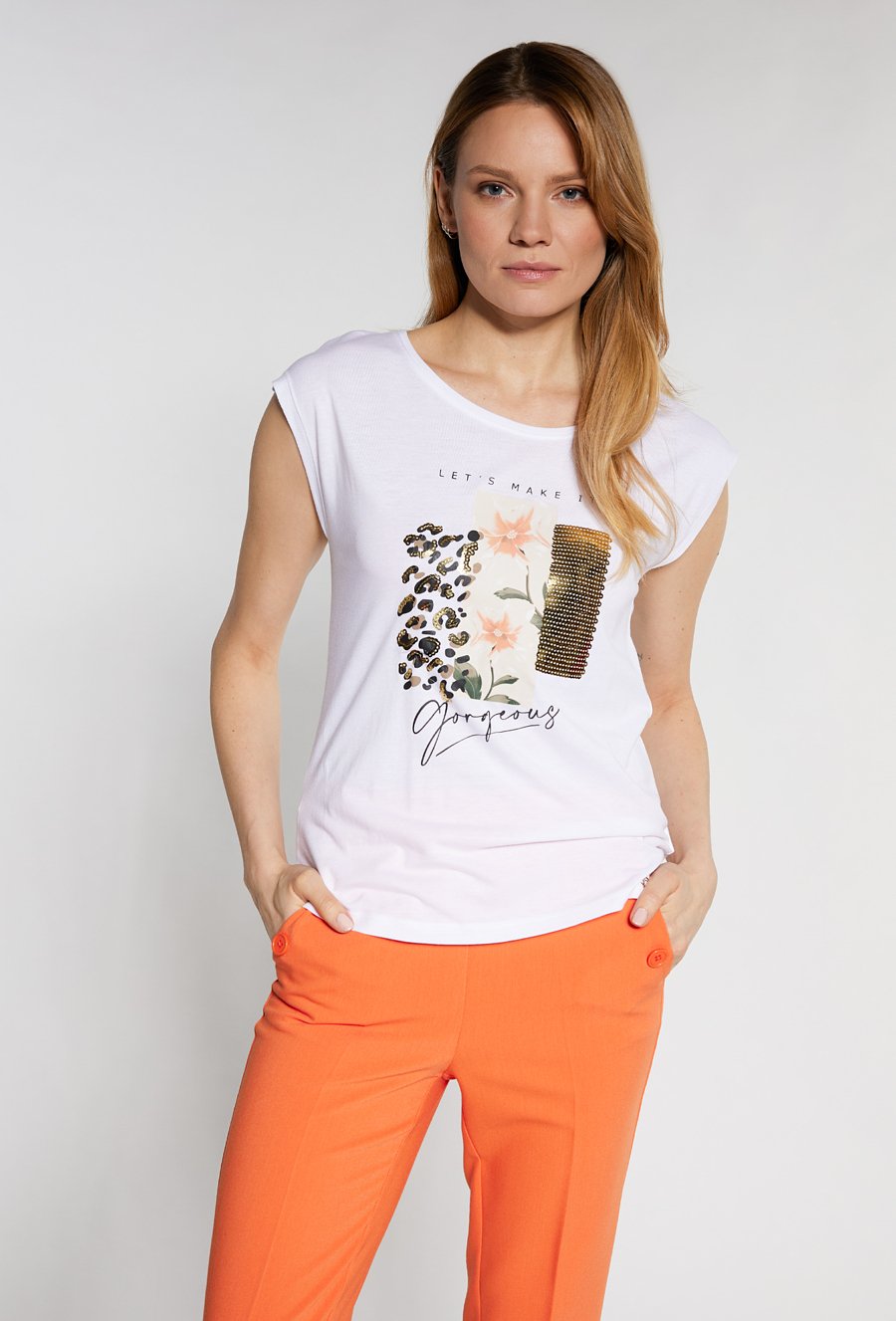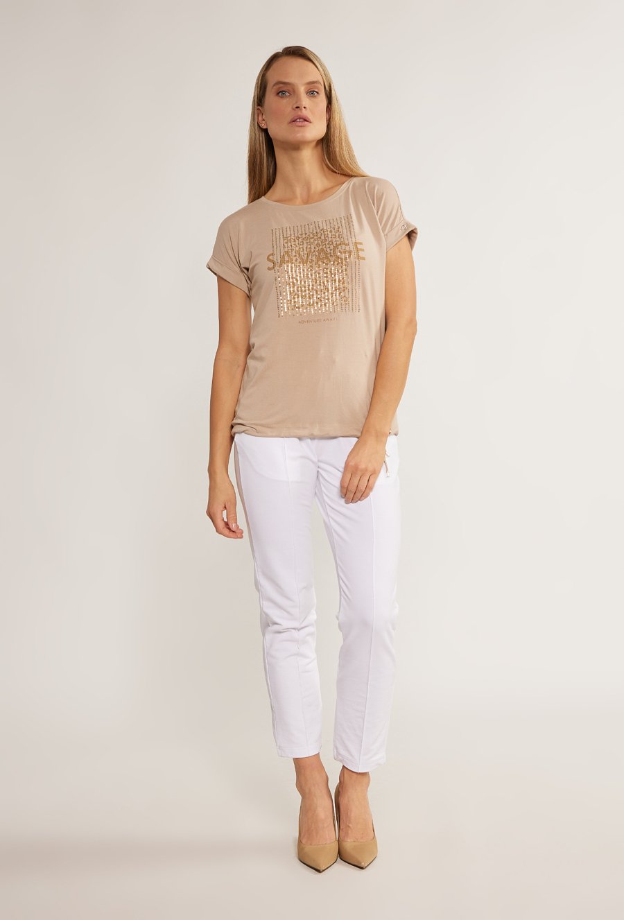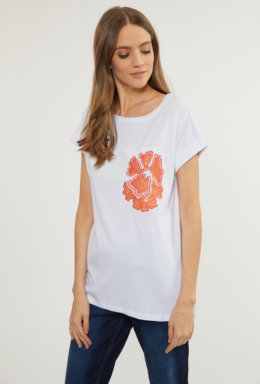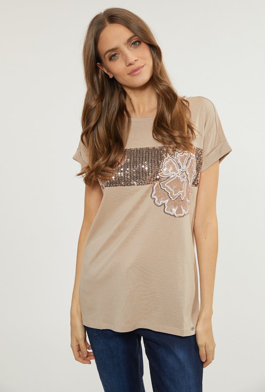 T-shirt damski z cekinowym panelem
