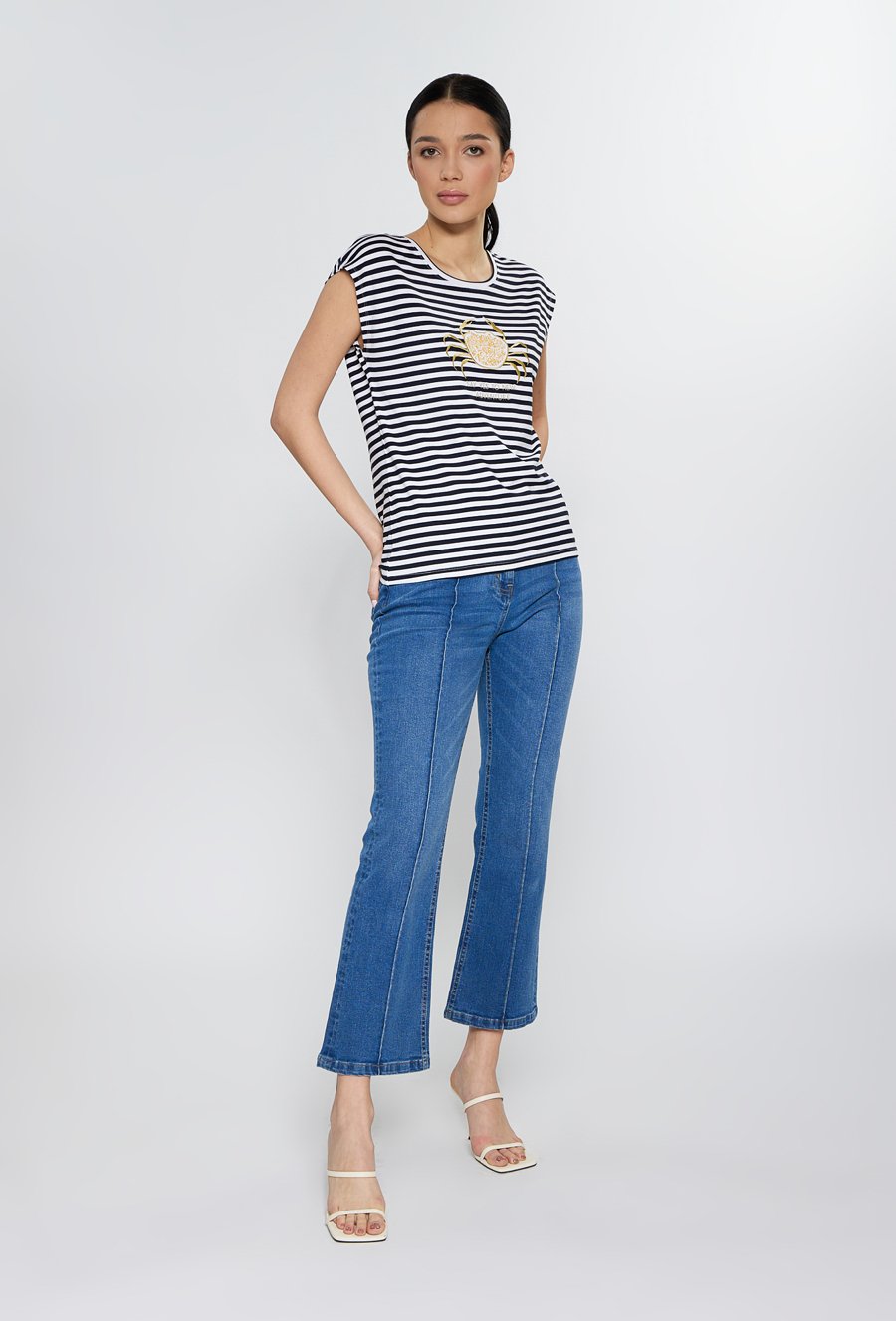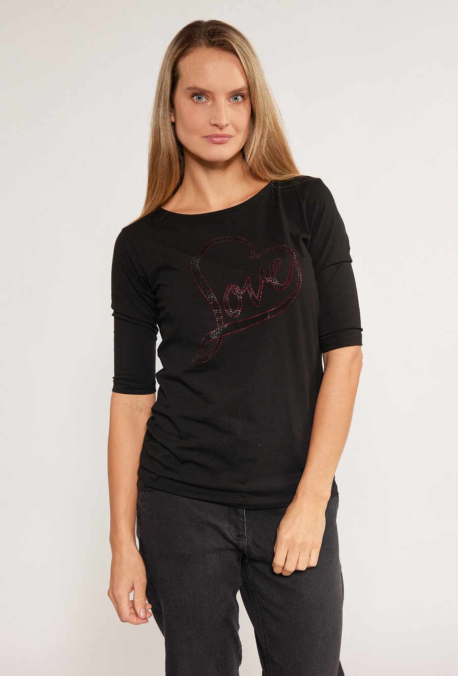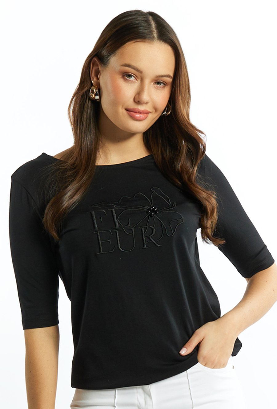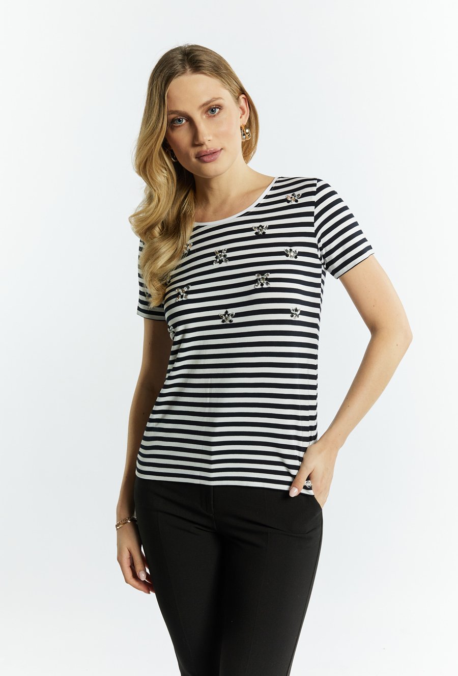 T-shirt damski z dżetową aplikacją