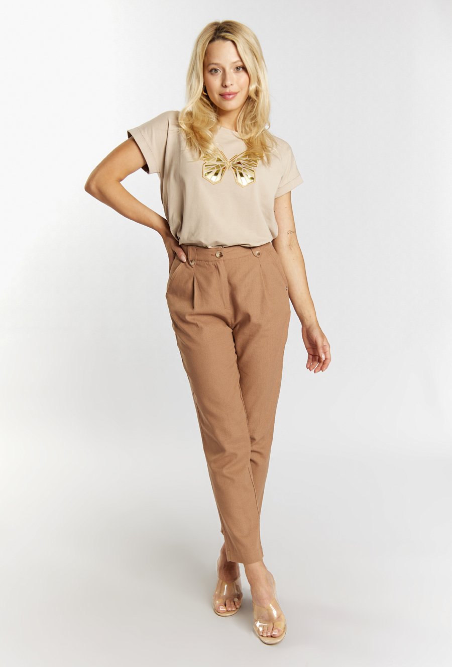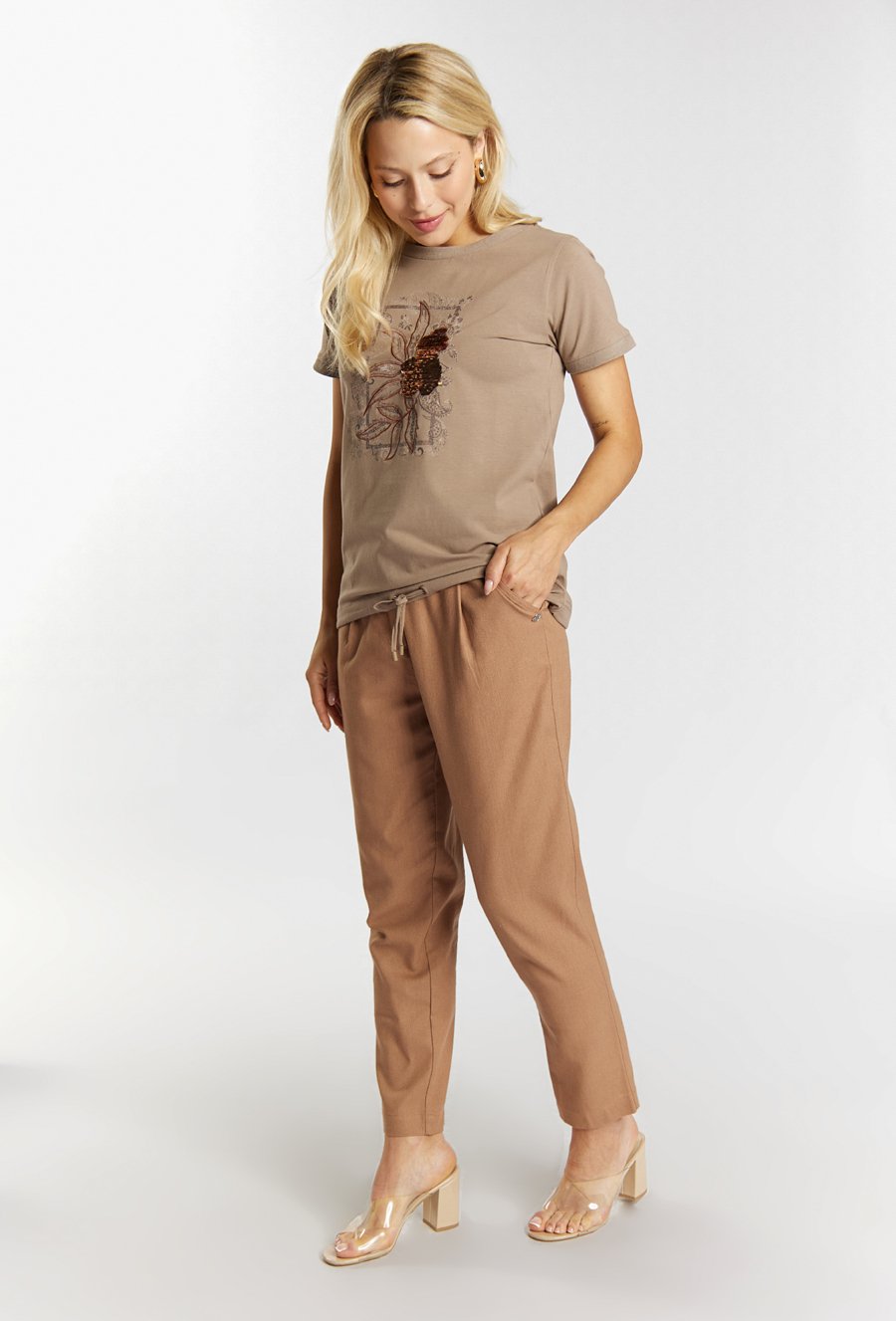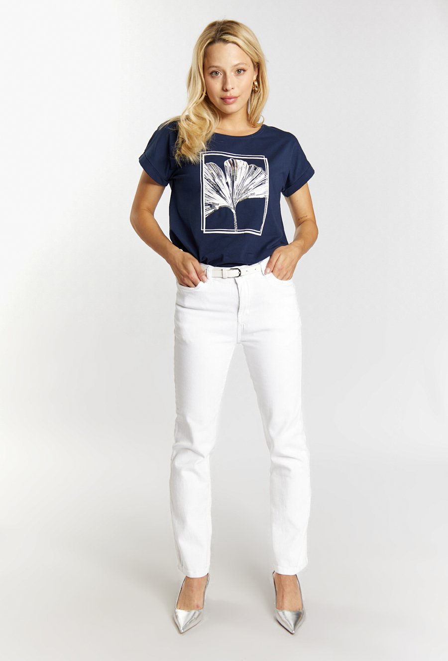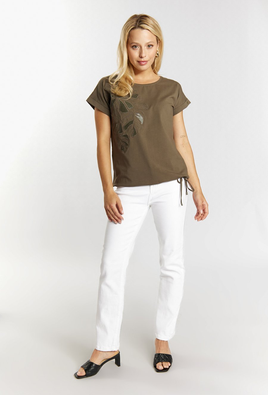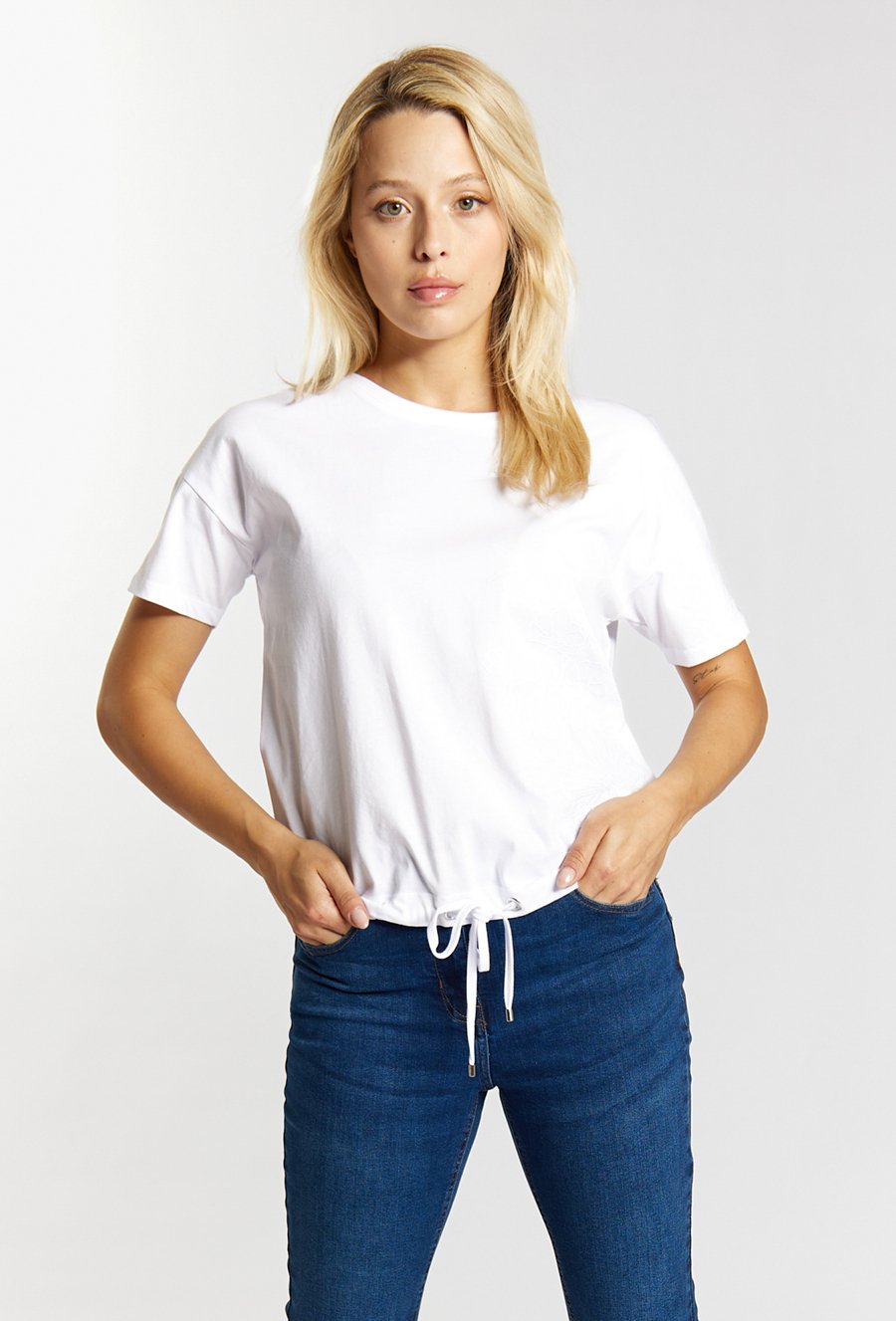 Biały t-shirt z dżetową aplikacją