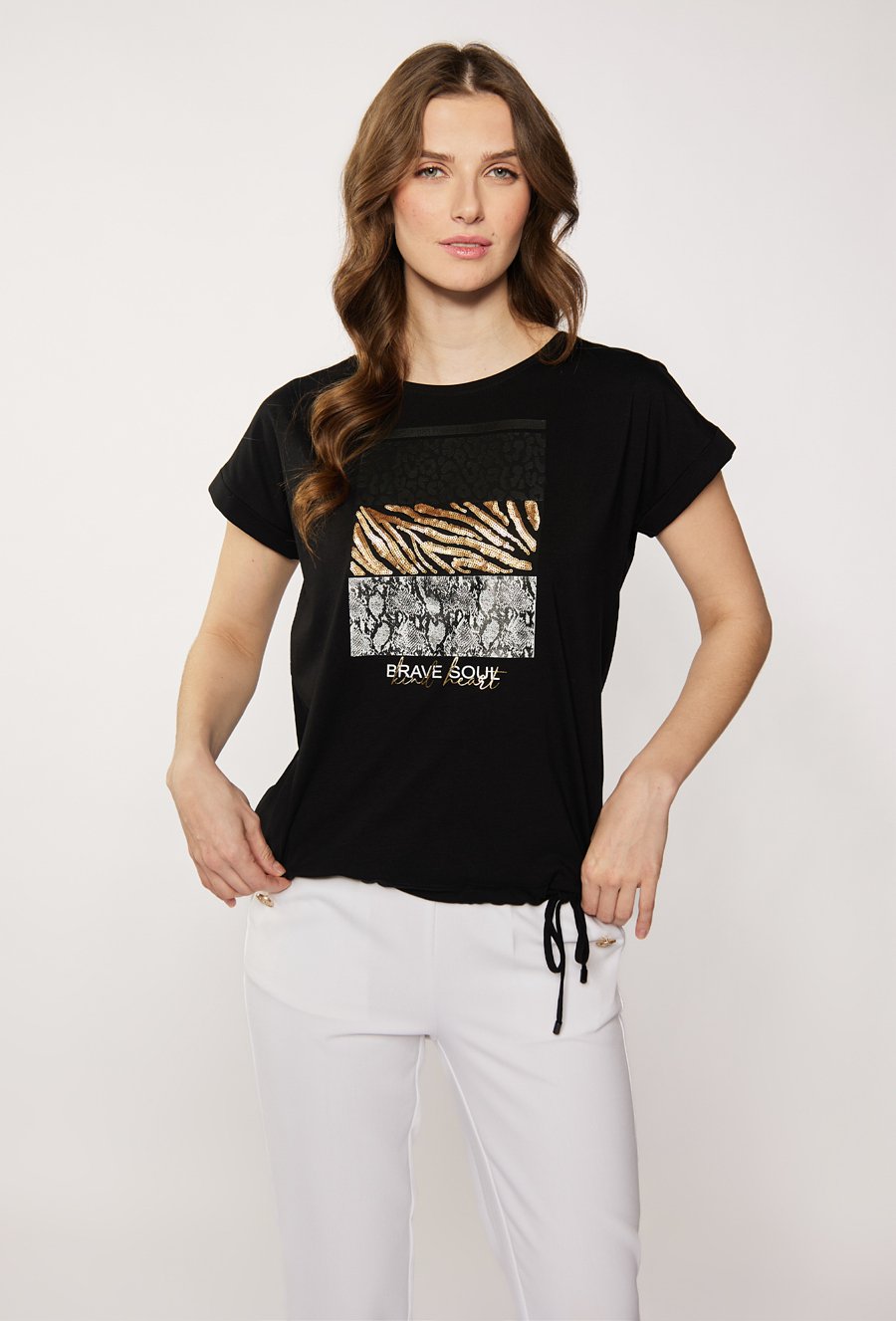 Bawełniany t-shirt z ozdobnym panelem