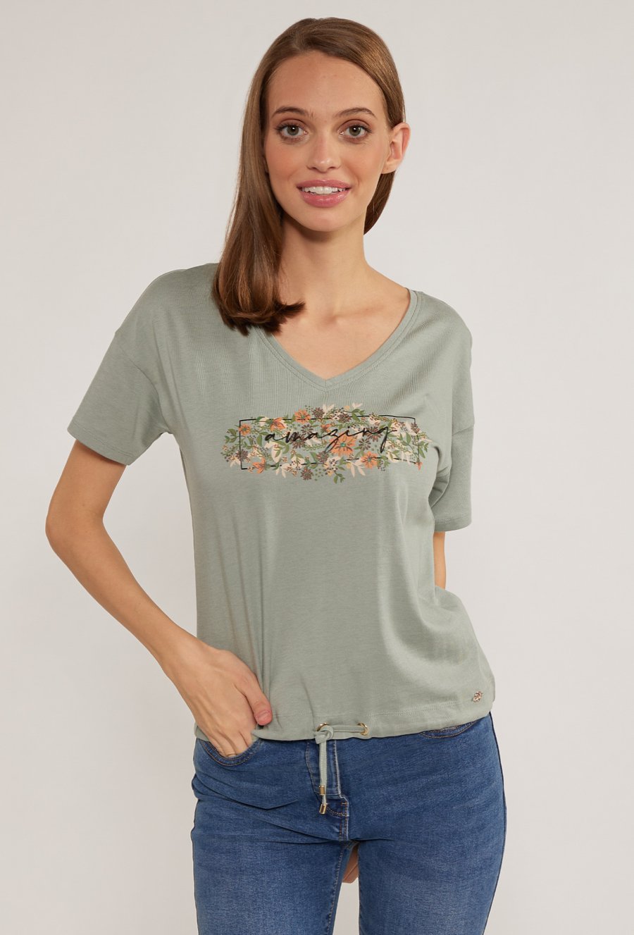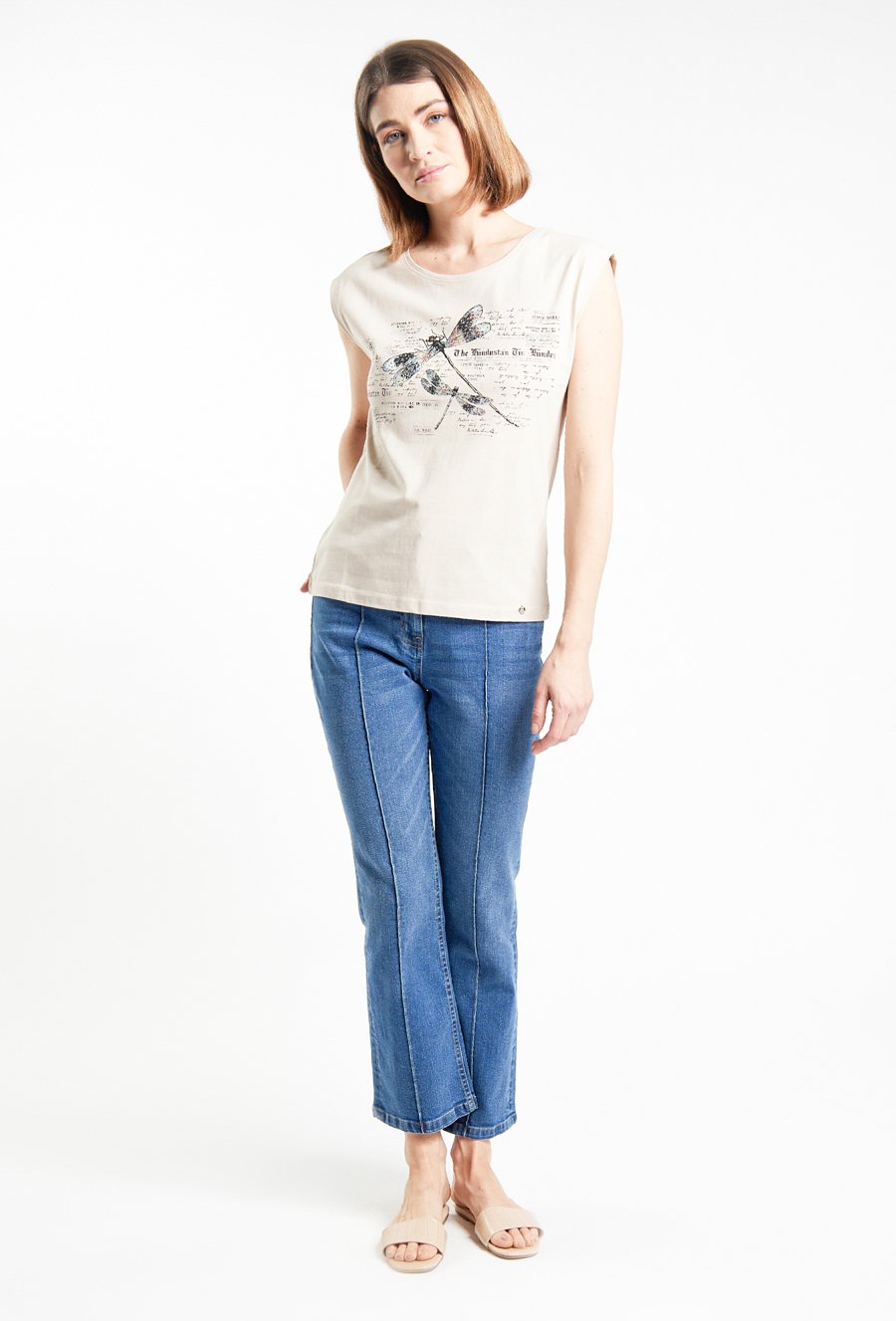 T-shirt damski z wzorzystym panelem