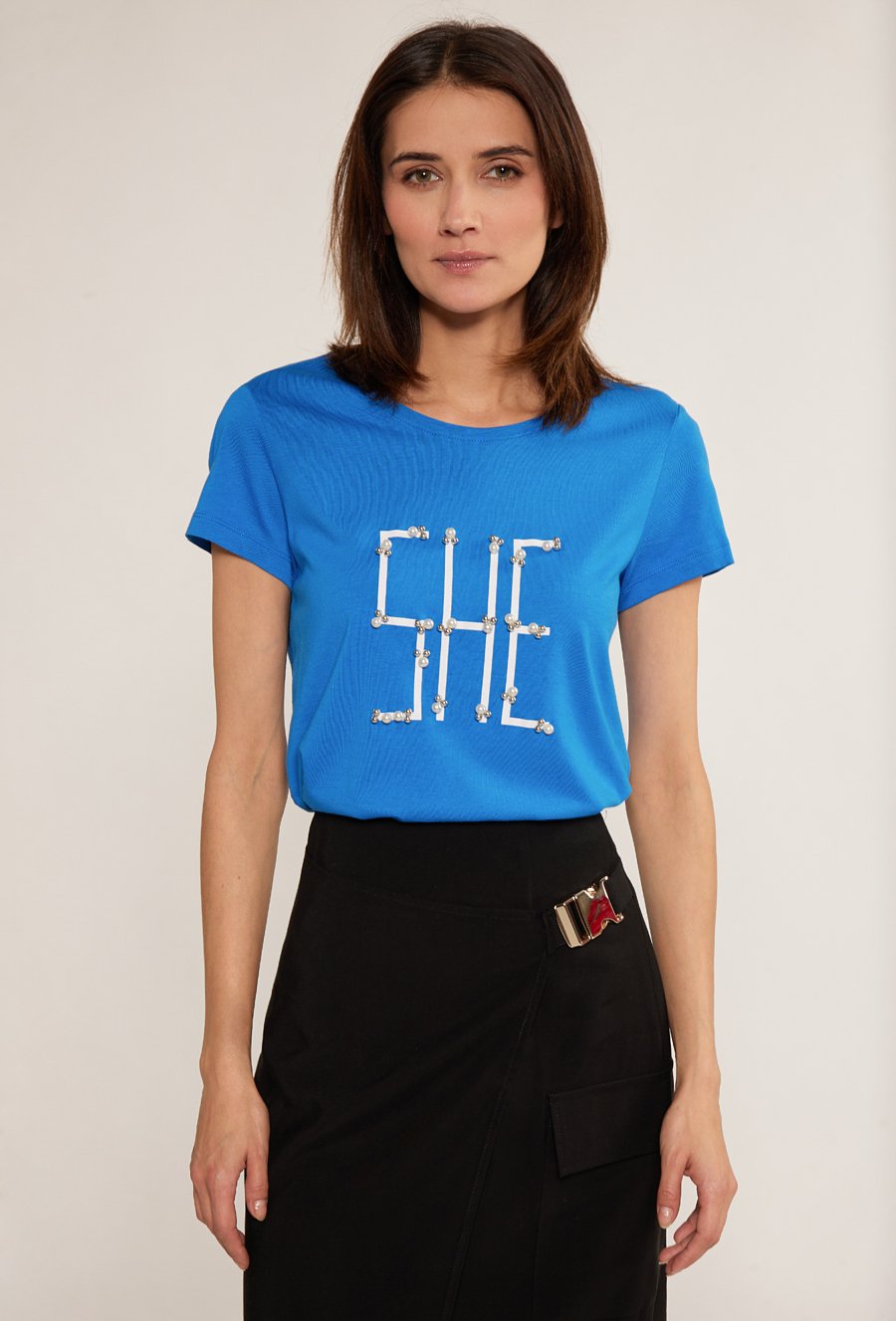 T-shirt z biżuteryjną aplikacja