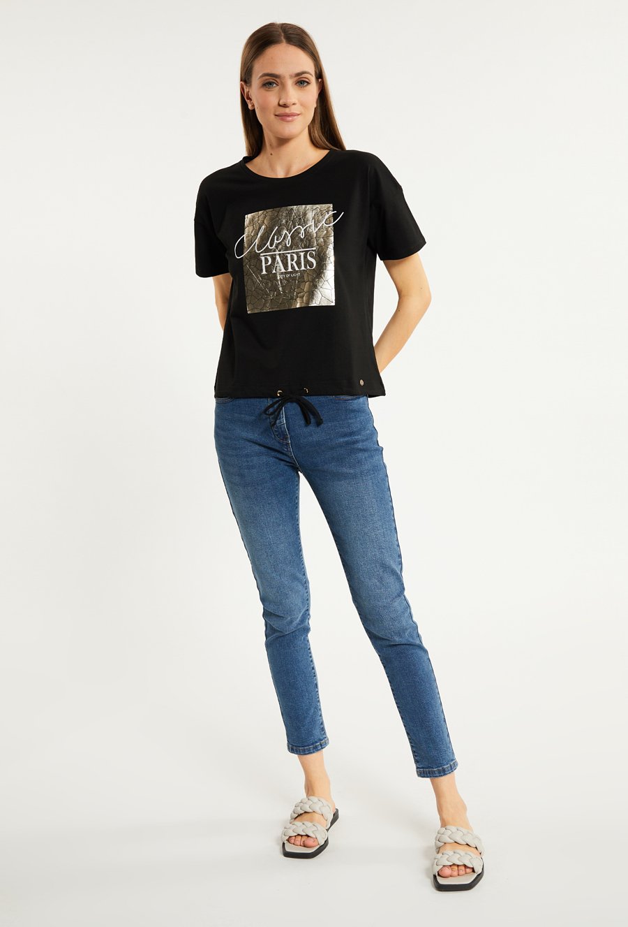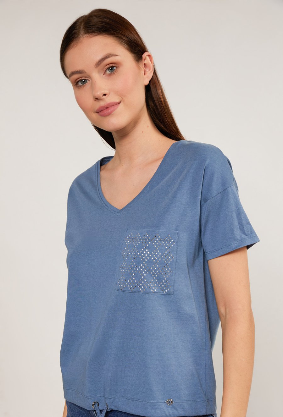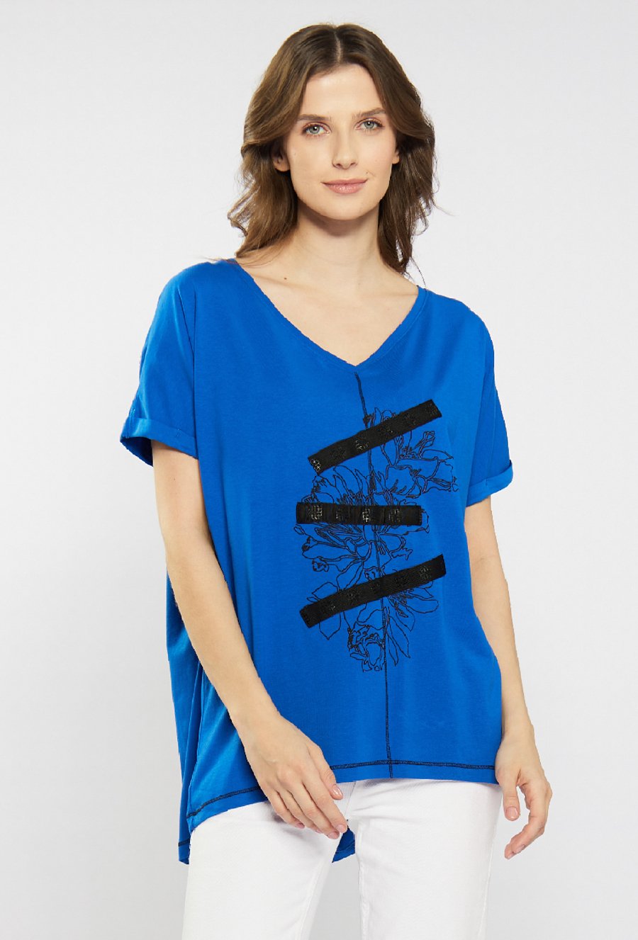 T-shirt z dżetową aplikacją