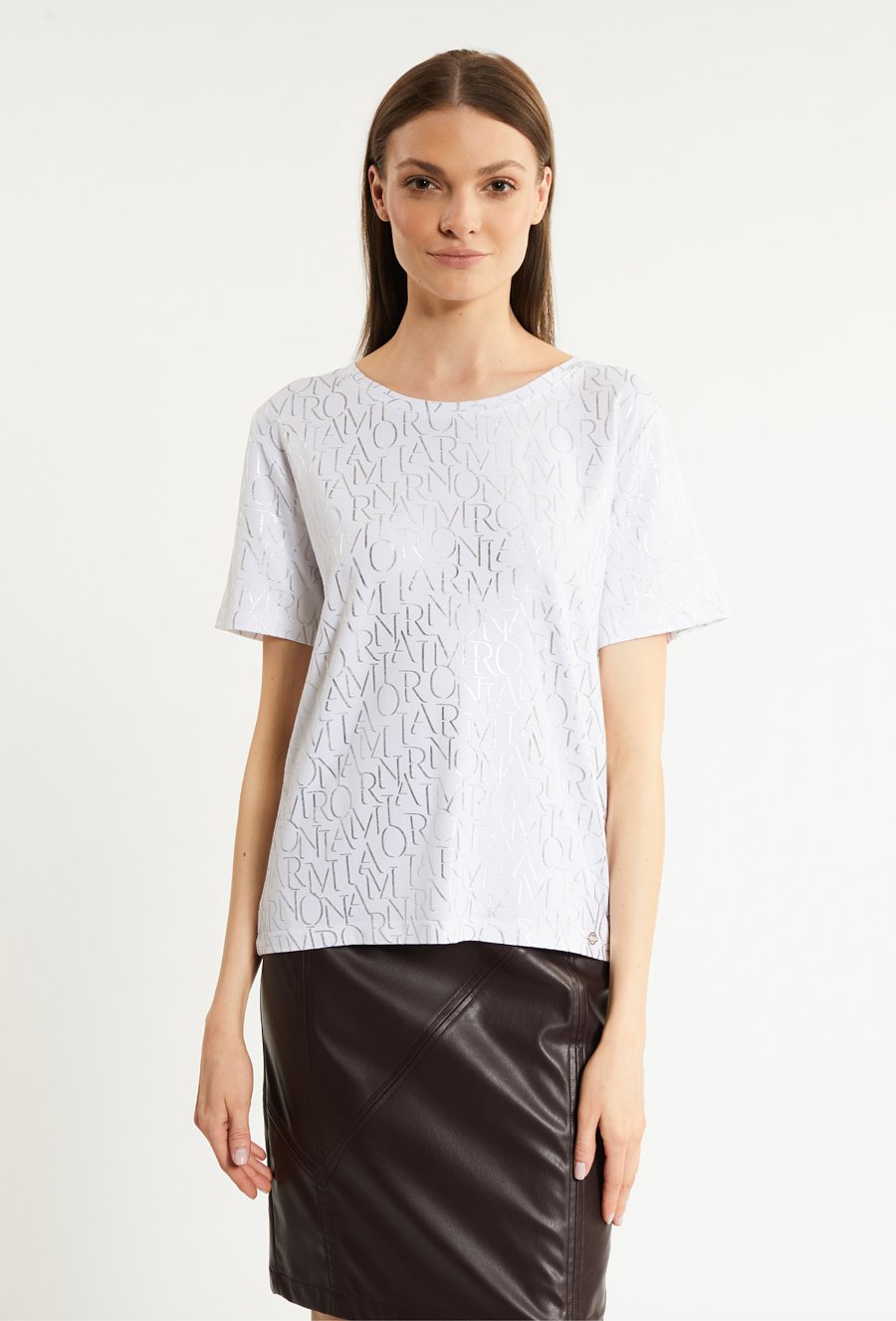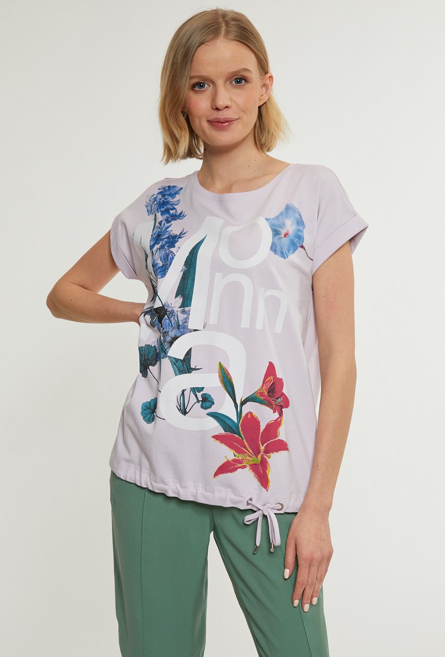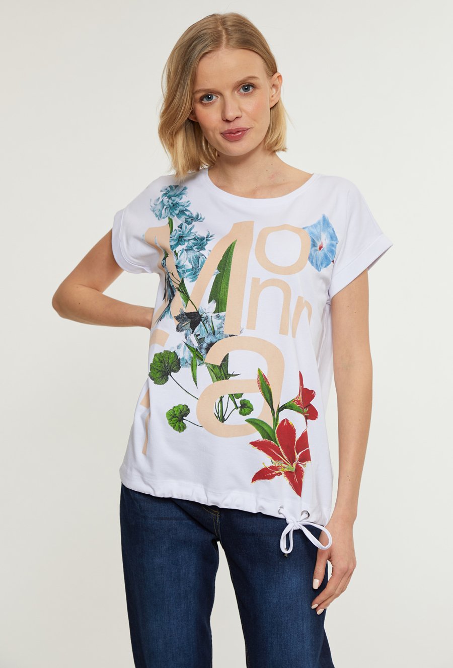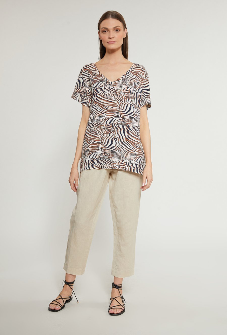Wzorzysty t-shirt ze ściągaczem u dołu