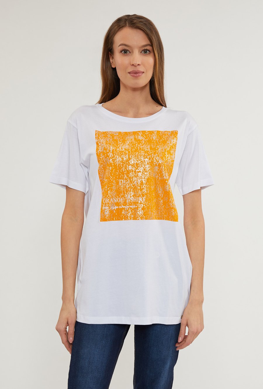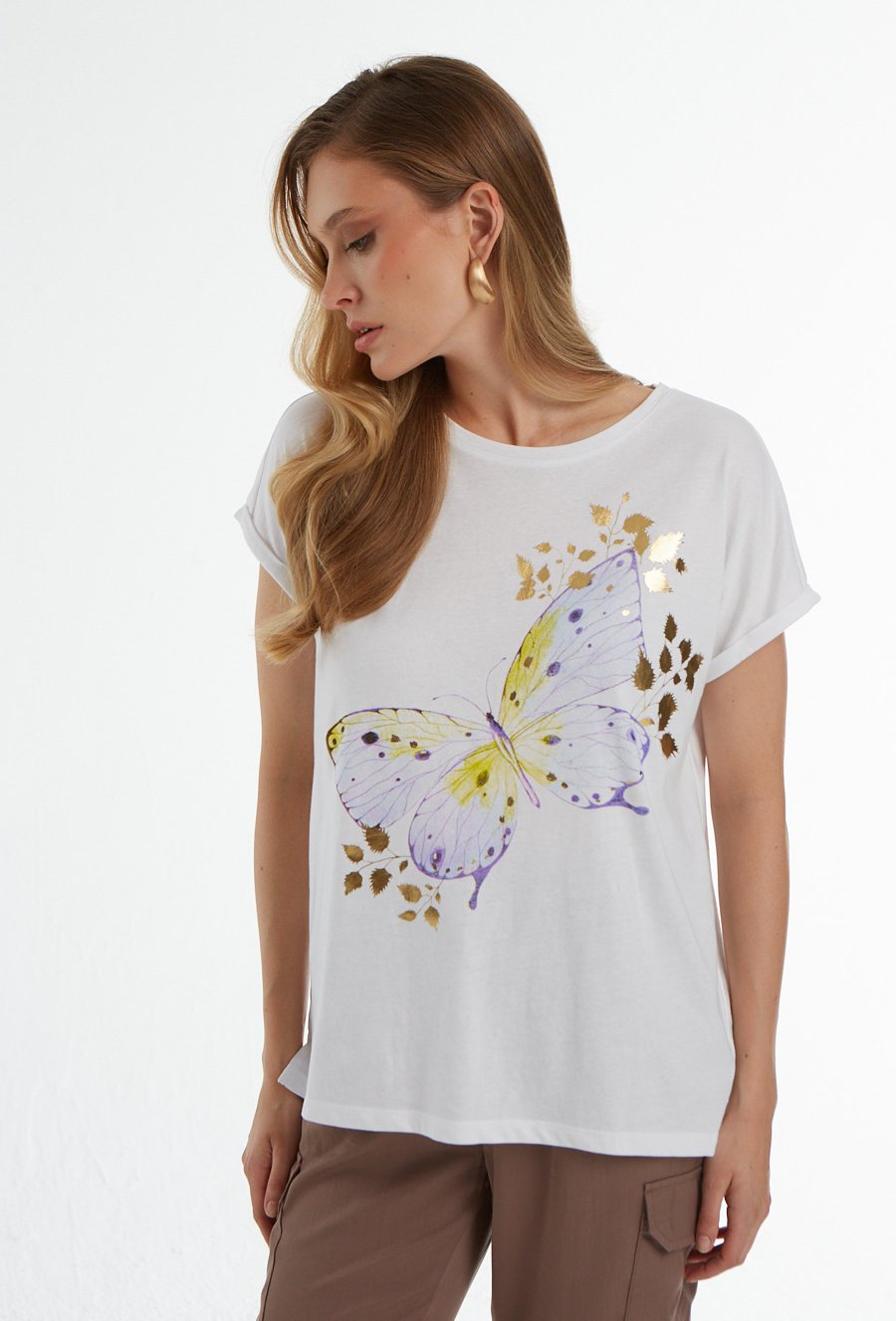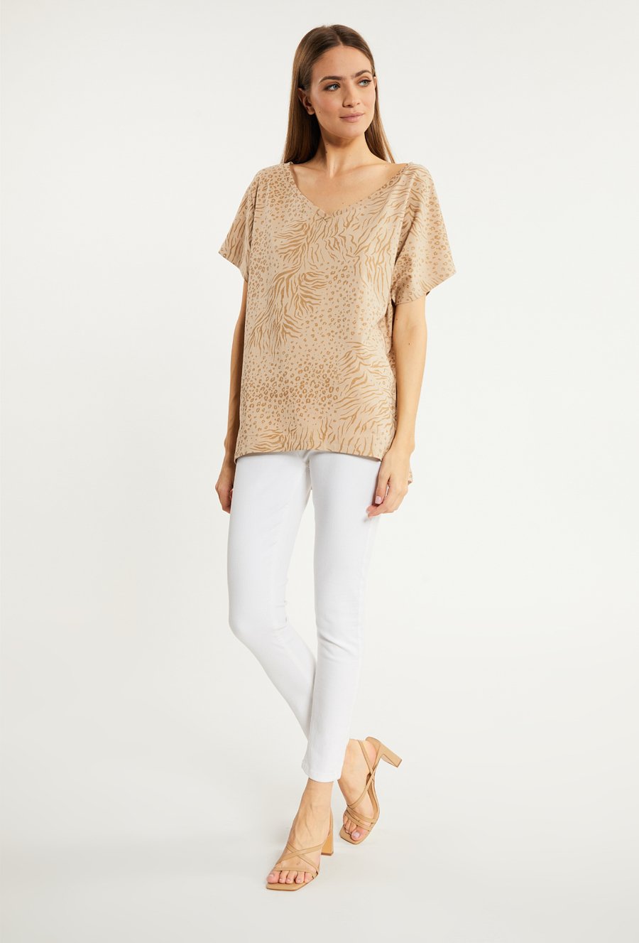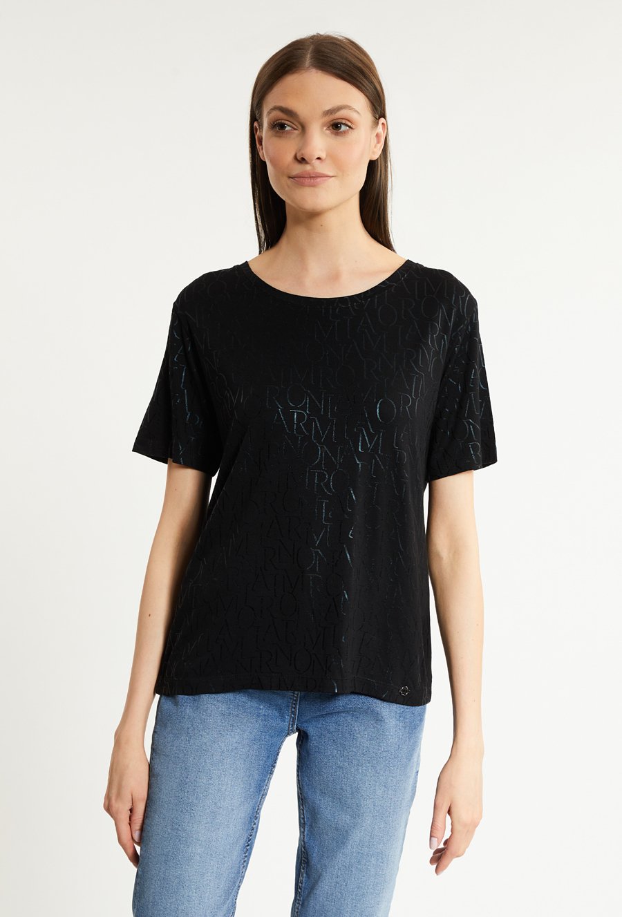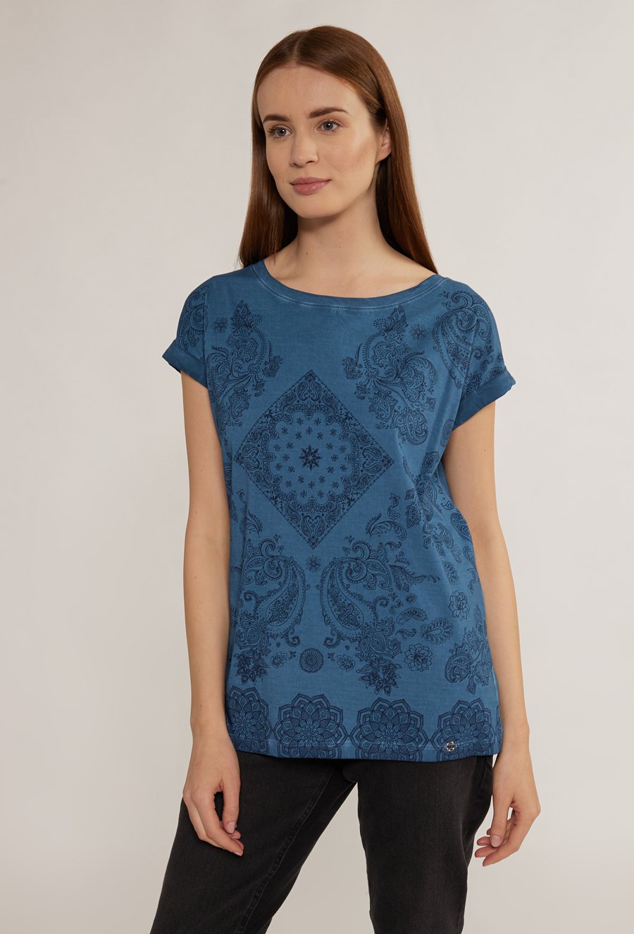 Wzorzysty t-shirt ze ściągaczem u dołu