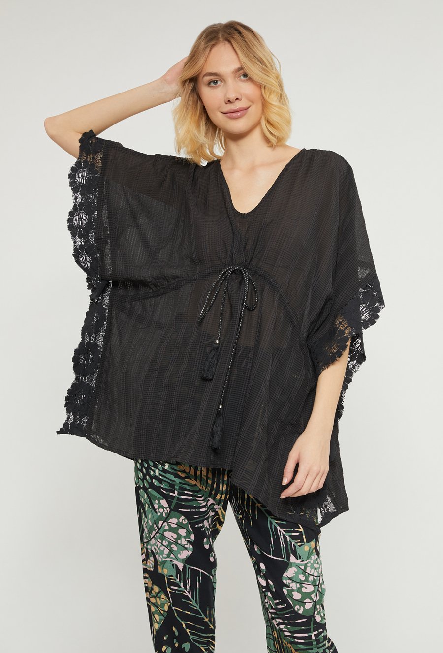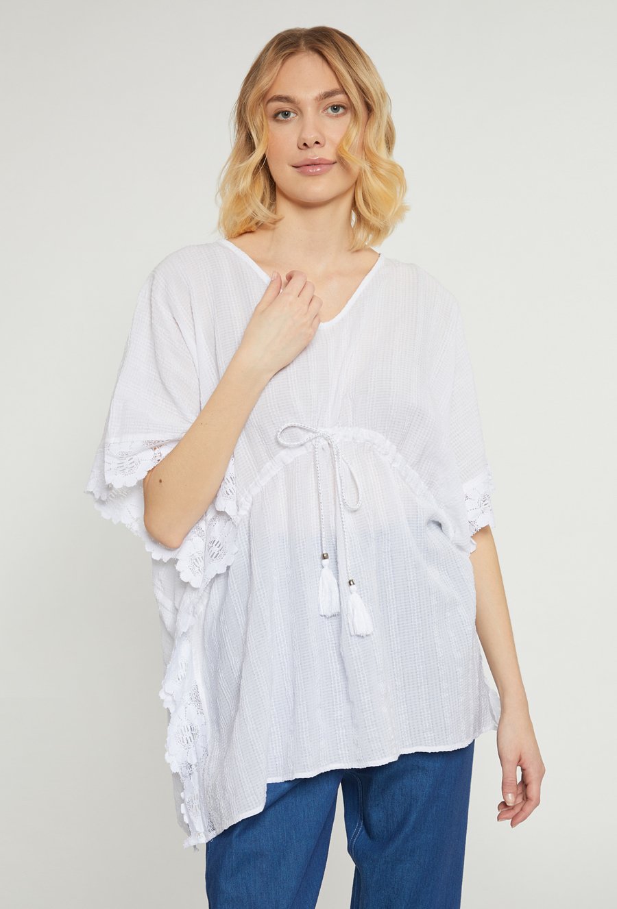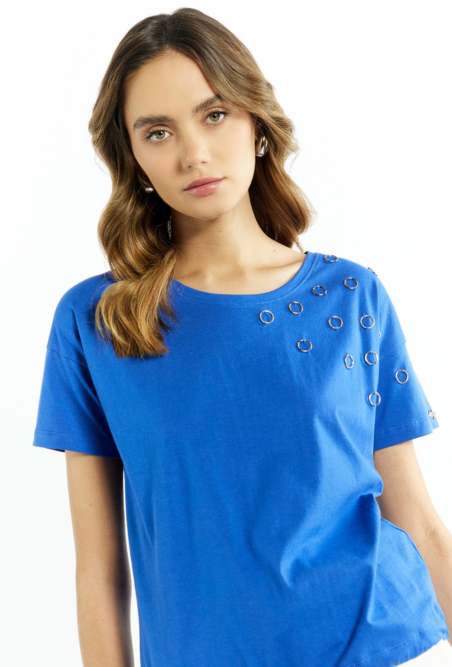 Bawełniana bluzka damska z ozdobnymi naszyciami