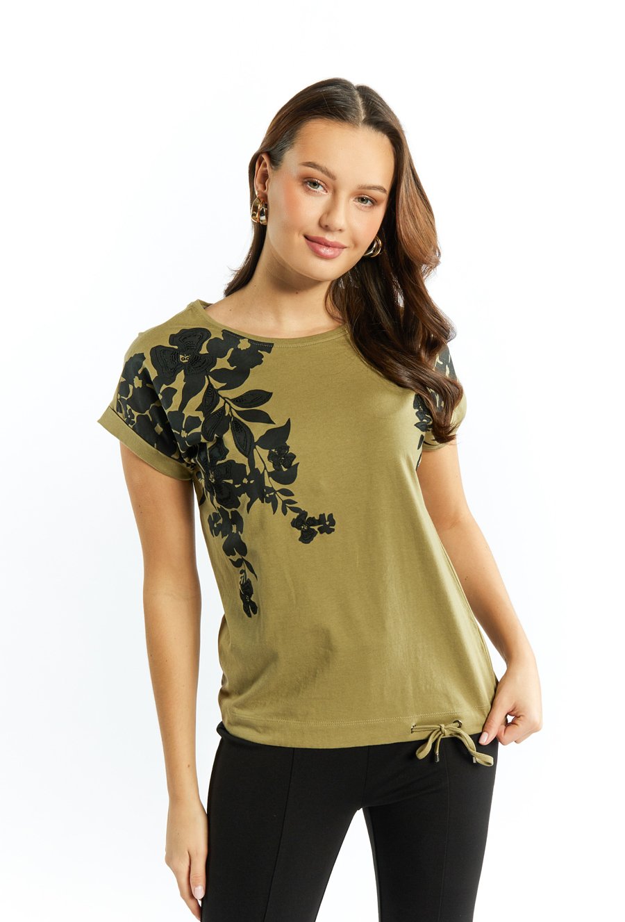 Bawełniany t-shirt z haftowanym wzorem w kwiaty