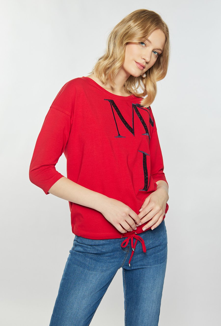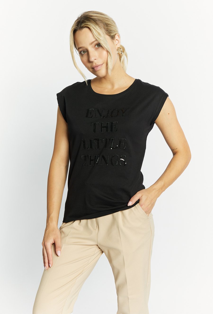 Bawełniany T-shirt z dżetowym napisem