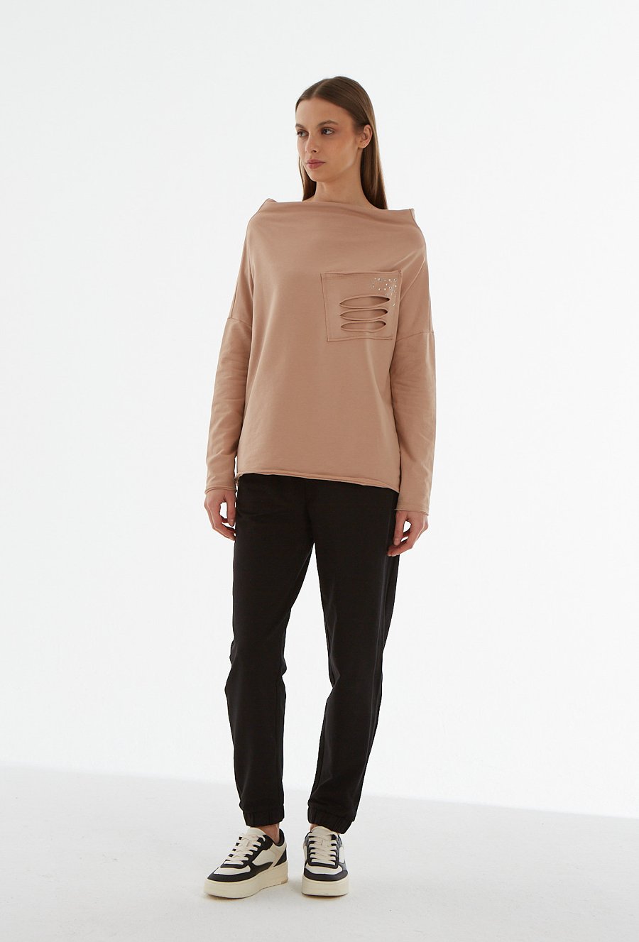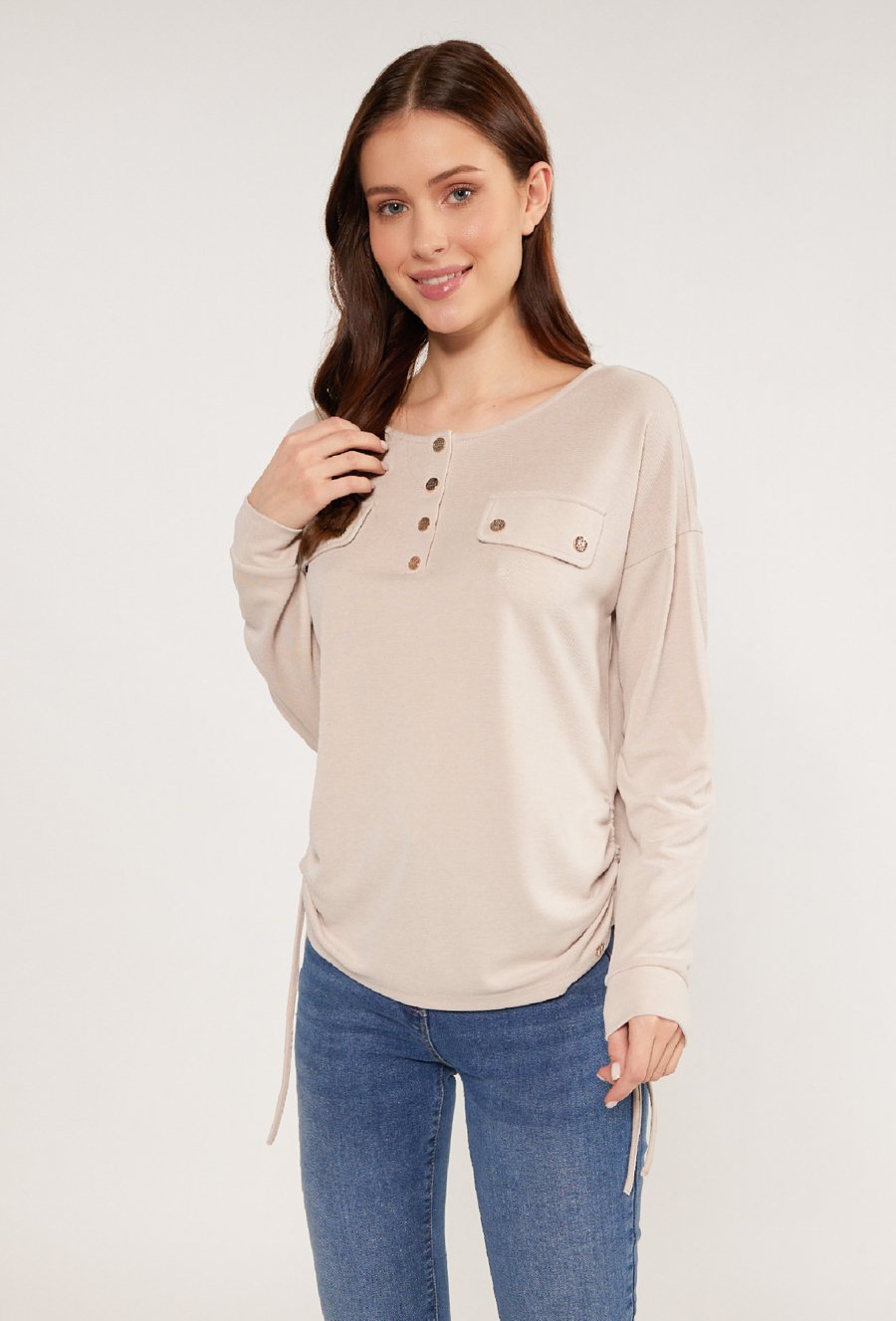 Beżowa bluza z imitacją kieszeni